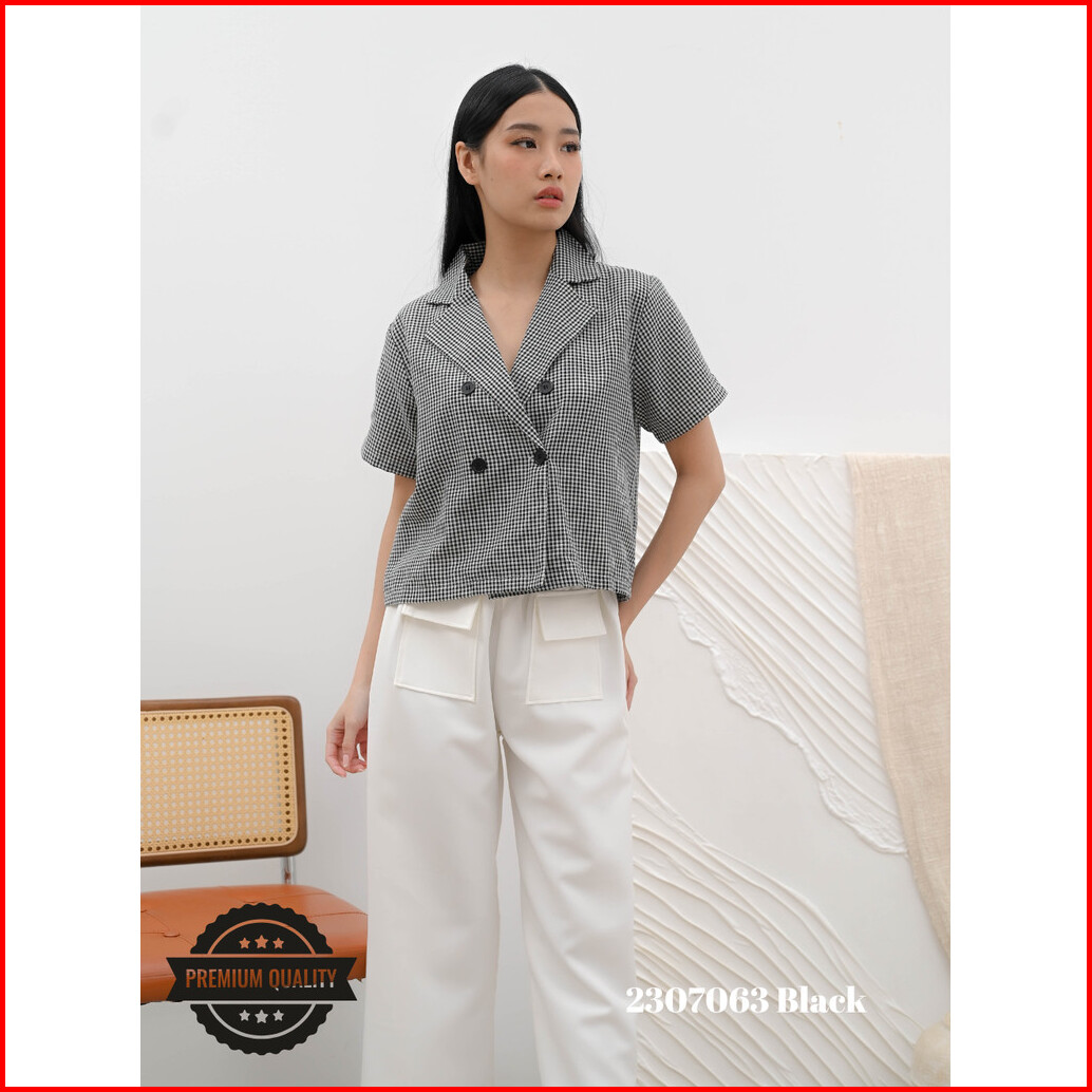 Cammomile Sia Blazer Kotak Catur Lengan Pendek 2307063