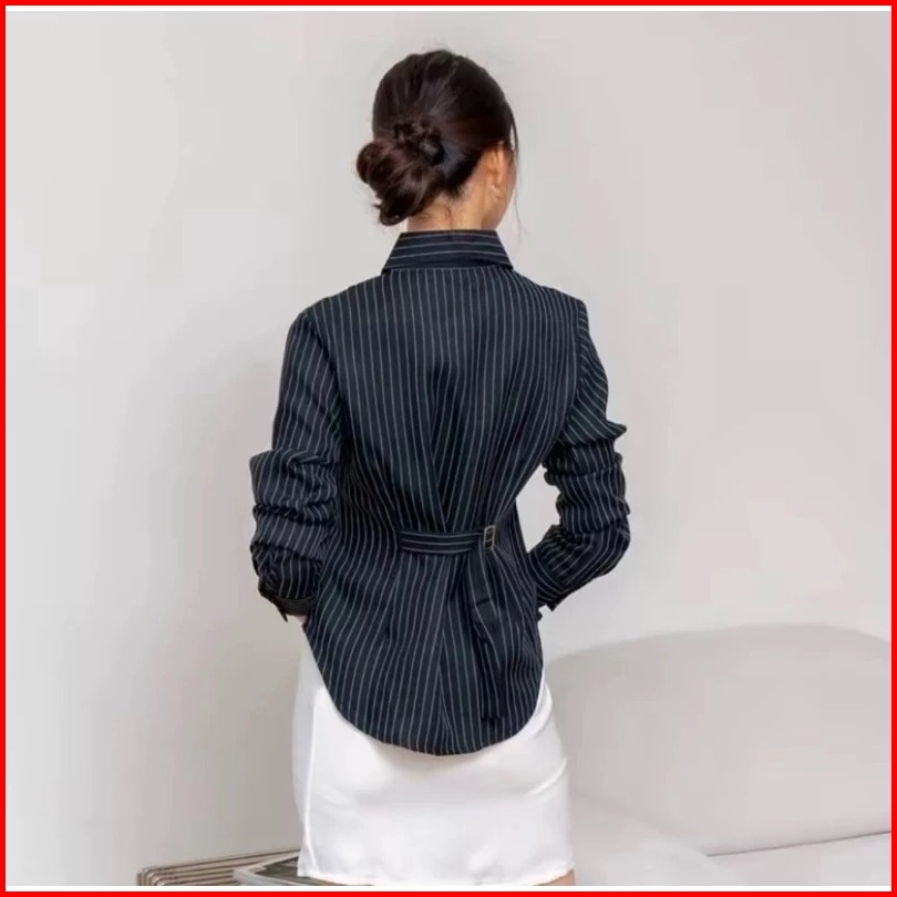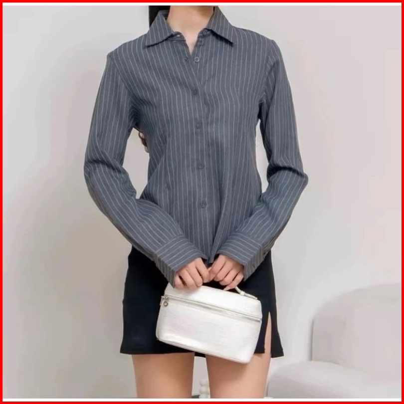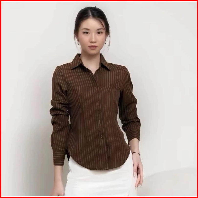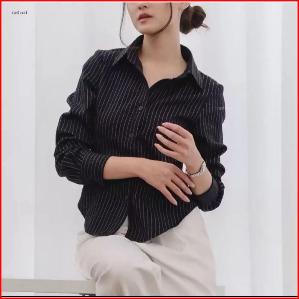 Netto -luna Stripe Long Sleeve - Kemeja Fitted Wanita - Atasan Lengan Panjang