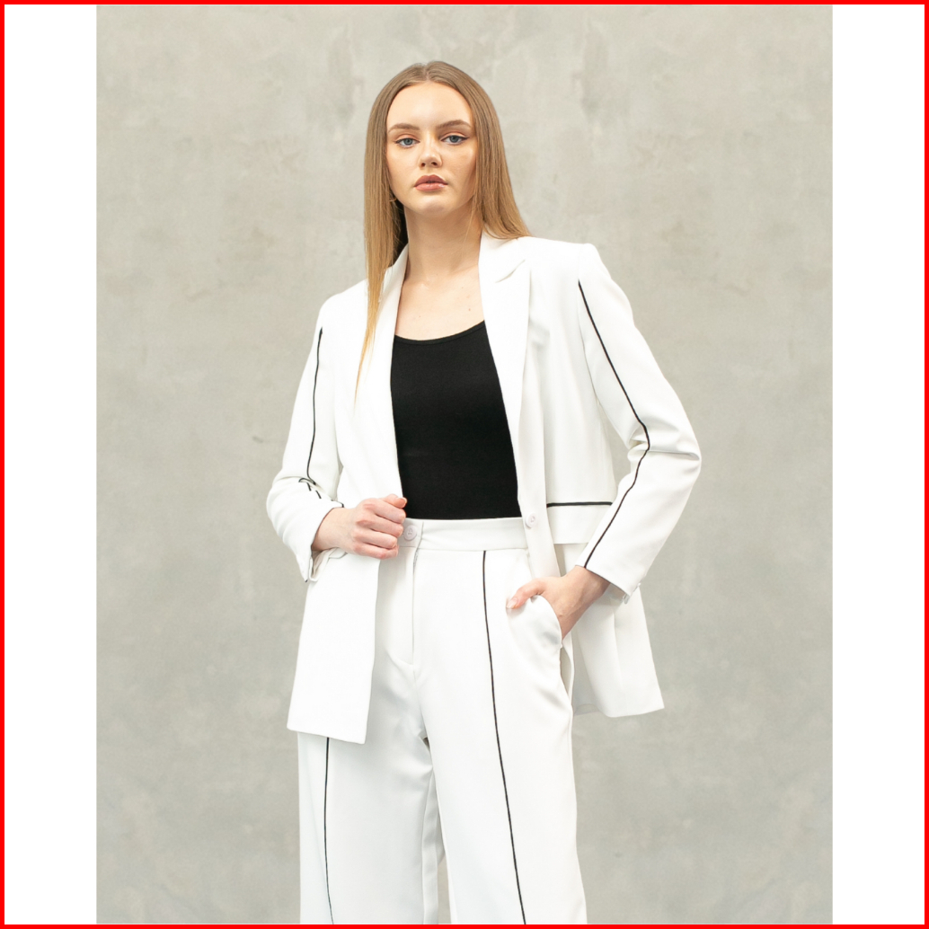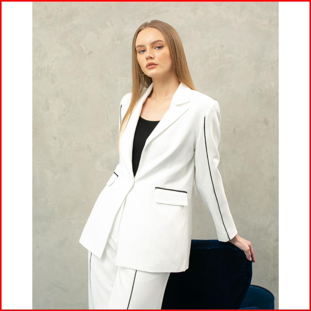Invio Gianetta Black Piping Blazer Jas Wanita - Indigo