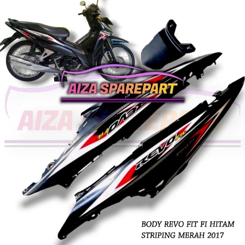 Body Honda Revo fit fi hitam striping merah 2017 / bodi Revo hitam