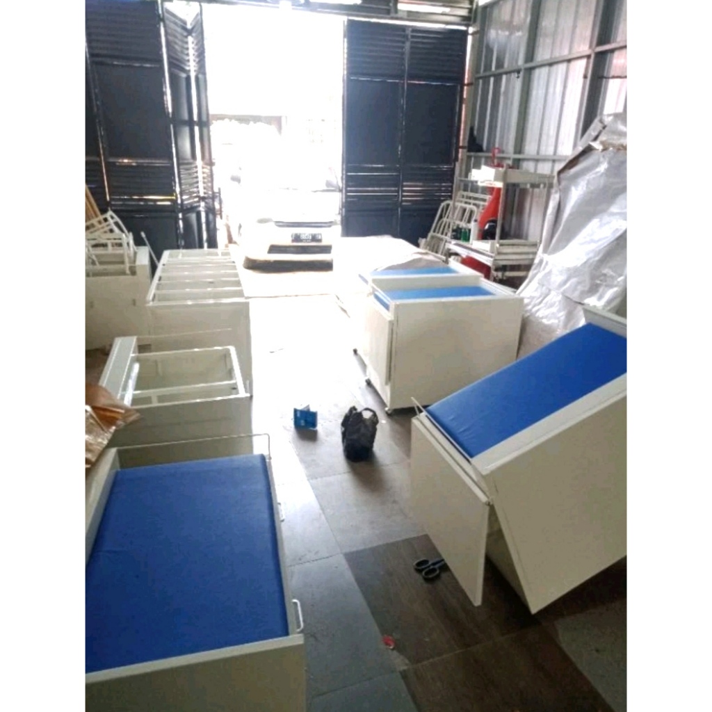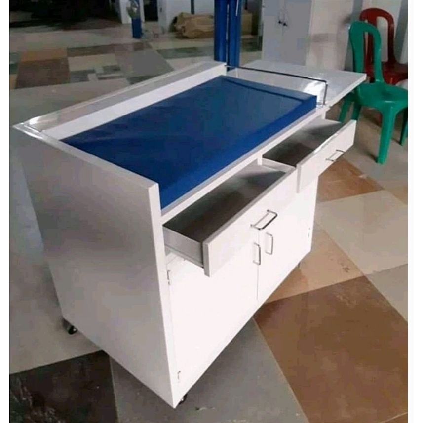 Meja Resusitasi Bayi Tebel PC Dengan Roda Karet
