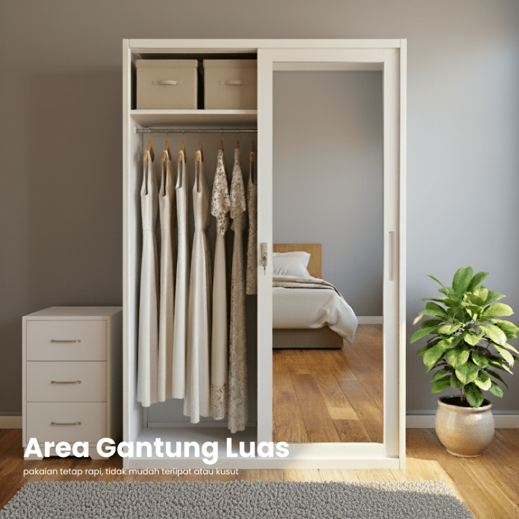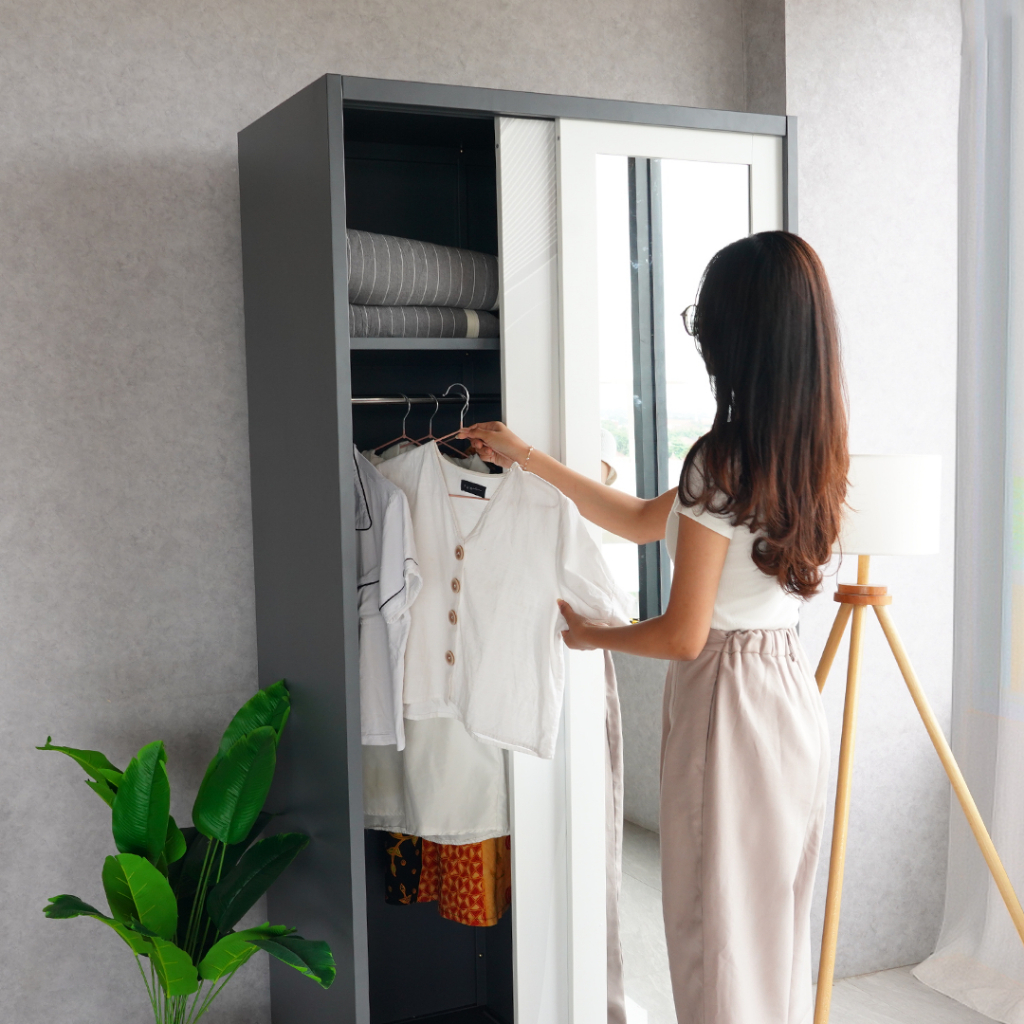 Uni Home Lemari Pakaian Besi Sliding 2 Pintu – Desain Minimalis Modern - Free Ongkir Jawa, Madura & Bali