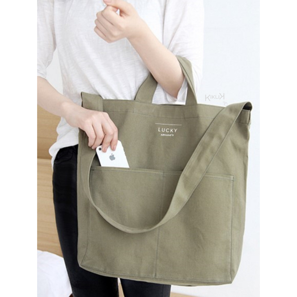 [KIKLIK] TOTE BAG KAIN CANVAS WANITA PRIA UNISEX BESAR POLOS SELEMPANG GENGGAM