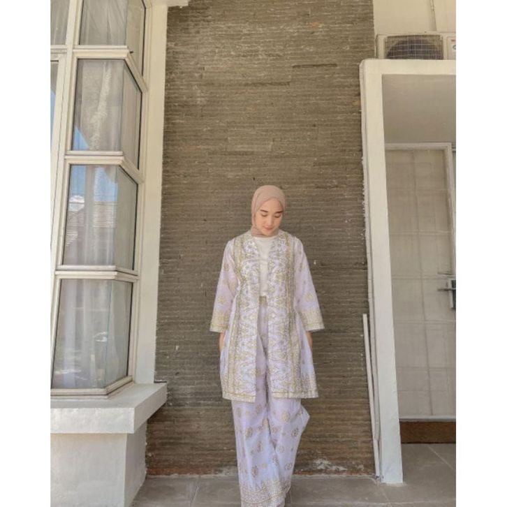 [START] Set Batik Songket Palembang Putih Auter Outer Setcel Wanita Jumbo Baju Couple Pesta Kondangan Suami Istri