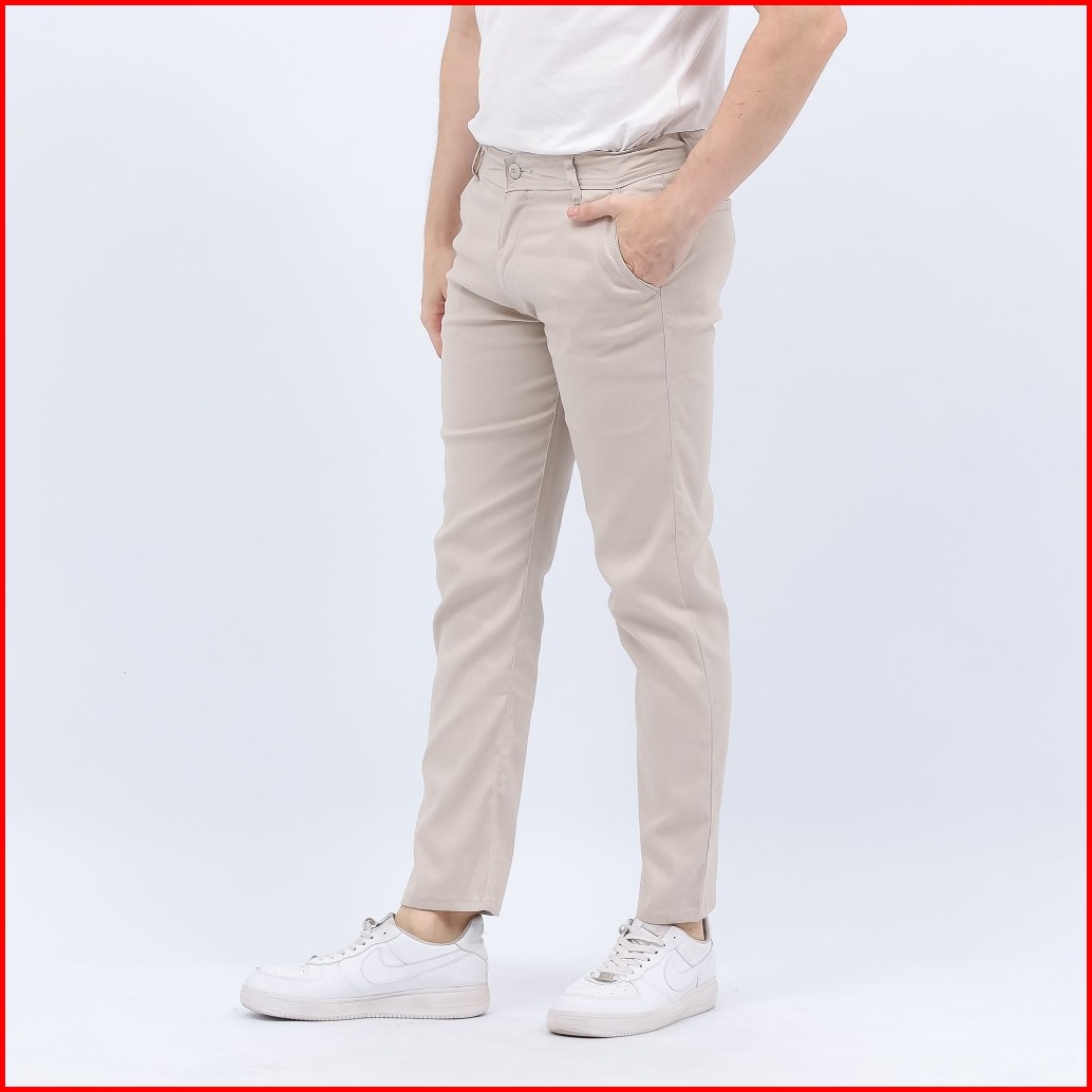 Boyscode Celana Panjang Chinos Premium Polos Casual Pria Cream Celana Kerja Kantor Pria Long Pants