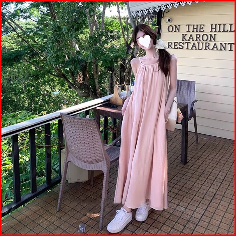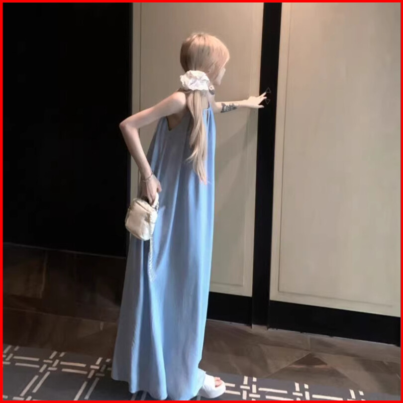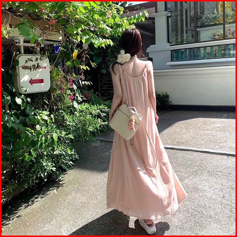Air Qz183 Maxi Dress Tie Strap Sleeveless Long Dress Wanita Dress Rok Party Dress Dress Pantai Flare Dress Dress Panjang