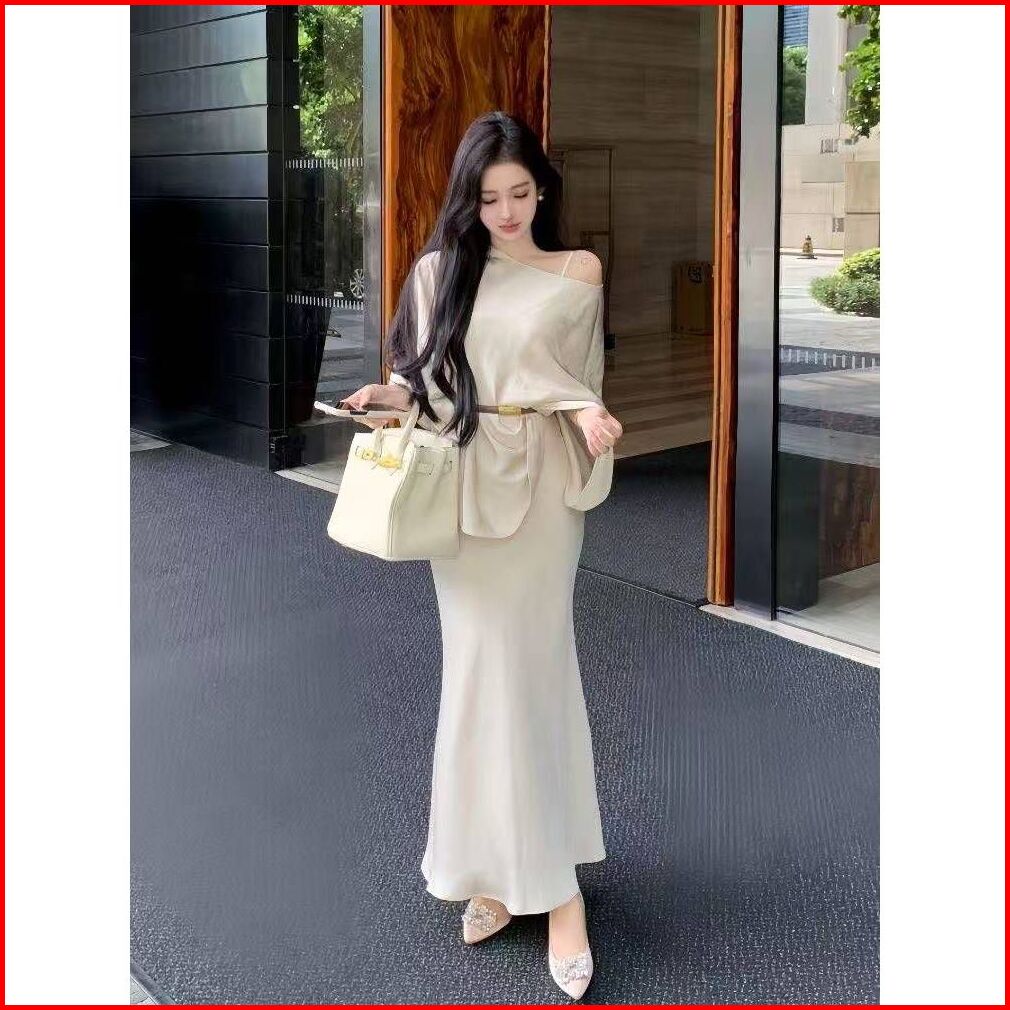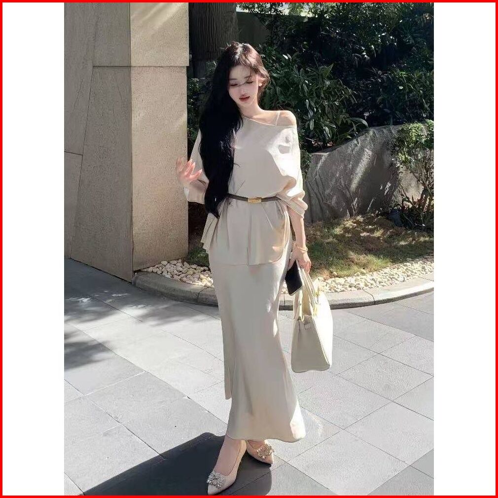 Susana Id French Dress Long Skirt Slanted Shoulder Top Two - Pieces Set B027d