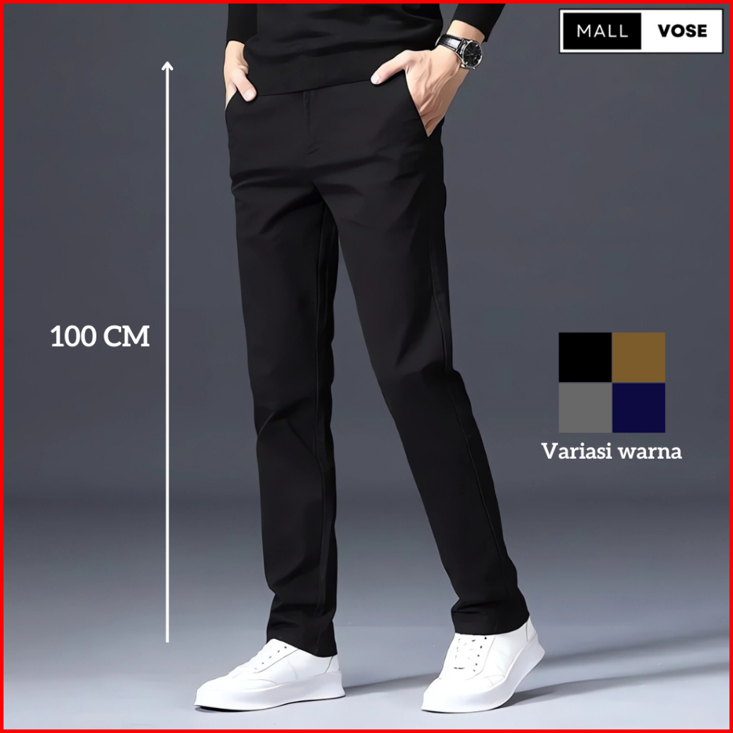 Mallvose - Chino Long Pants Celana Pria Slimfit Black Strech Adem