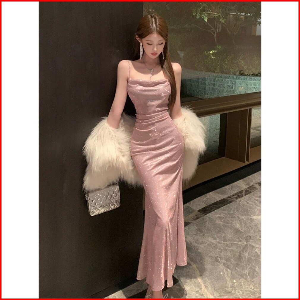 Miss Emita Long Dress Pesta Mewah Elegan Kondangan Wanita Kekinian Pink Dress Party Night Club Press Body Panjang Dress