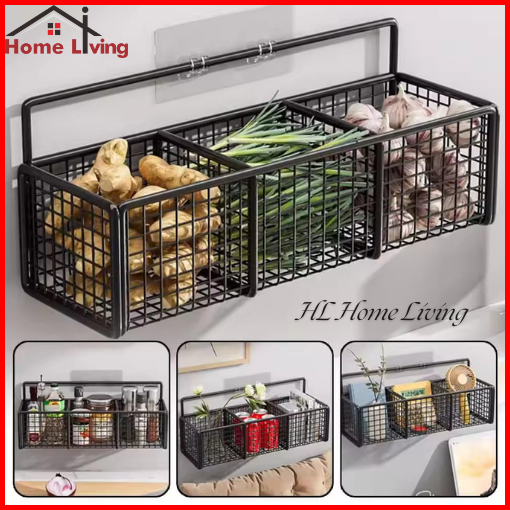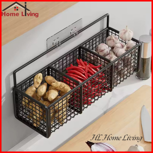 Hl Rak Keranjang Jaring Sekat Tempel Dinding Rak Gantung Tempat Penyimpanan Bumbu Dapur
