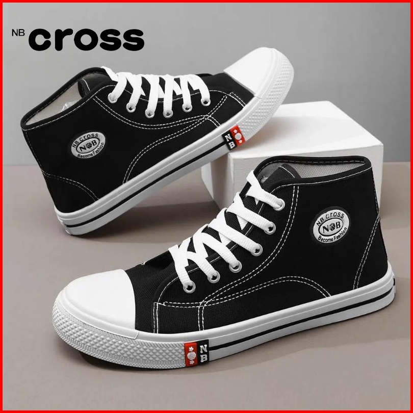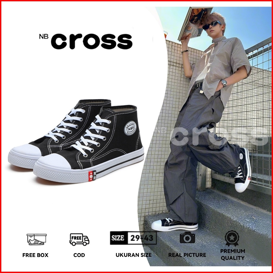 Nbcross Sepatu Sekolah Anak Cowok Laki-laki Baru Sneakers Anak Putih Hitam Canvas Premium Untuk Sd Smp Sma Ukuran 29-43