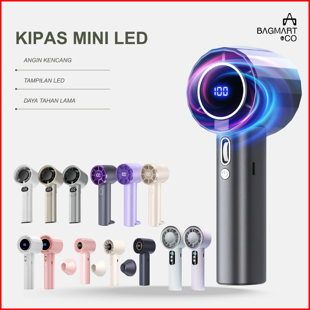 Kipas Angin Mini Turbo Portable Fan Kipas Tangan Led Digital Display High-speed Adjustable Wind