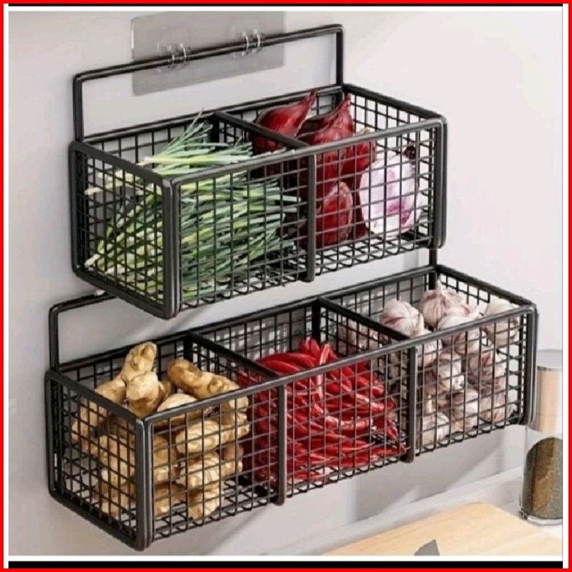 Peromo Rak Keranjang Sekat Tempel Dinding Rak Bumbu Dapur Uk 35x15x14