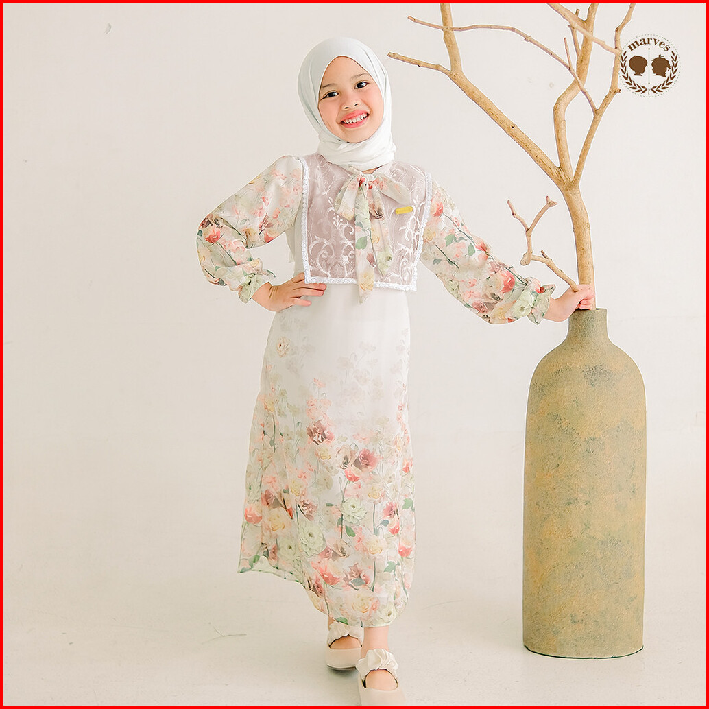 Marves Shafira Gamis Baju Muslim Anak Perempuan Set Hijab Bahan Crinkle Usia 1 Hingga 14 Tahun