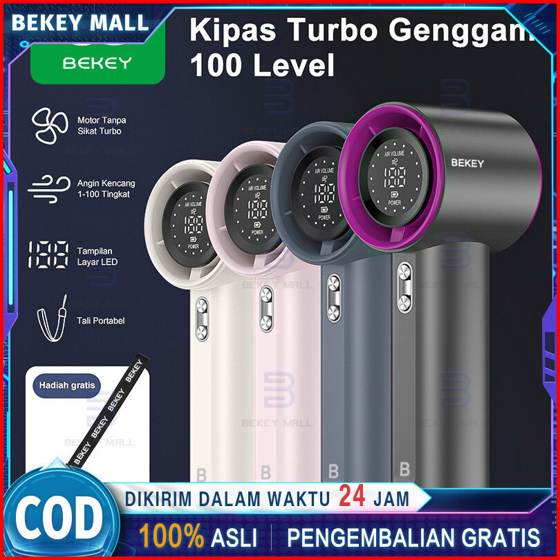 Bekey Kipas Strong Mini Wind 100 Gear Wind Speed Kipas Angin Digital Display Adjustable Turbo Kipas Powerbank Mini Denga