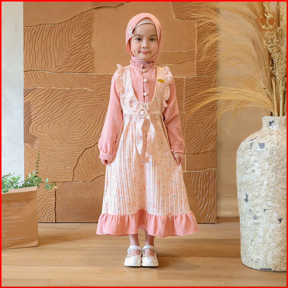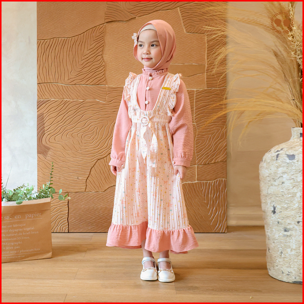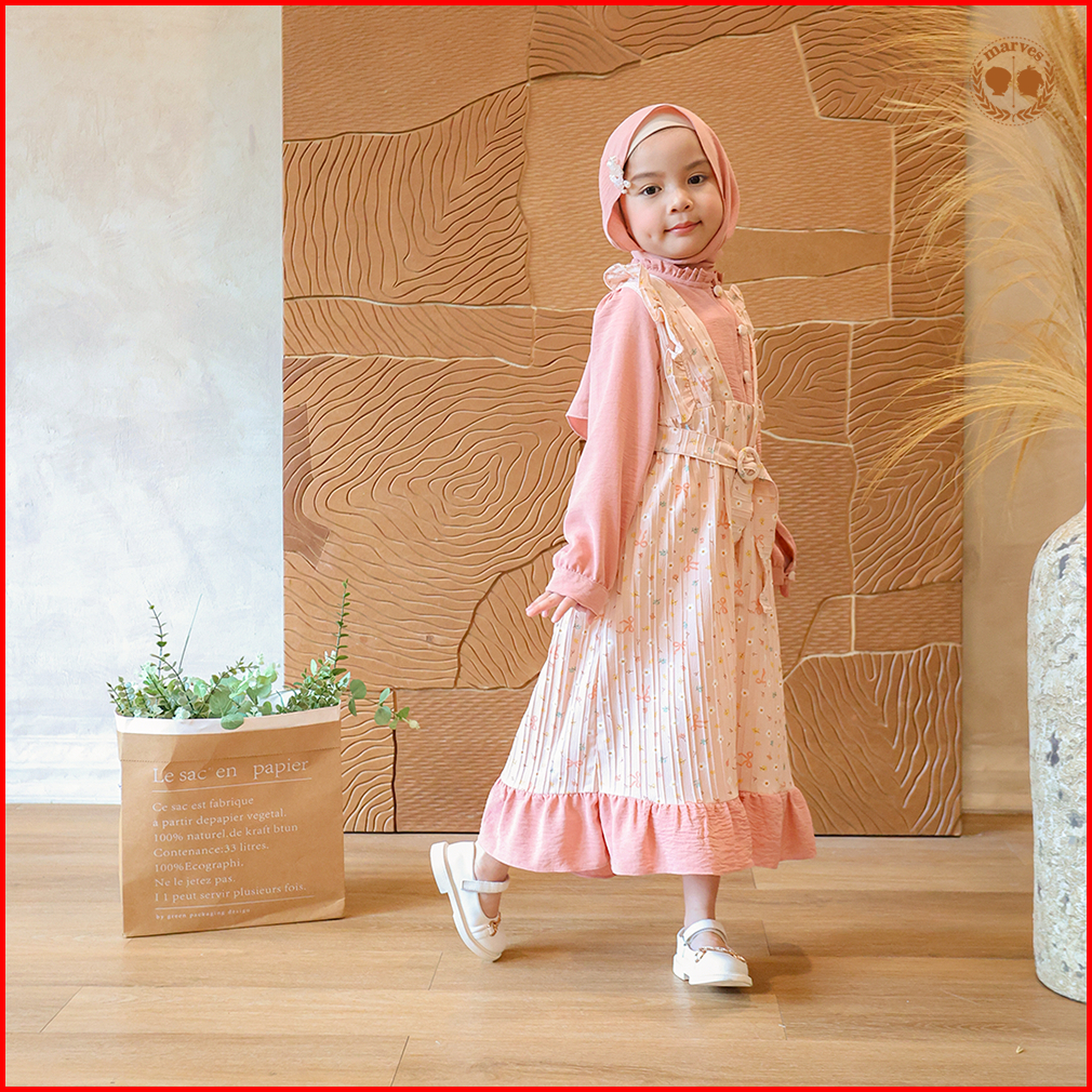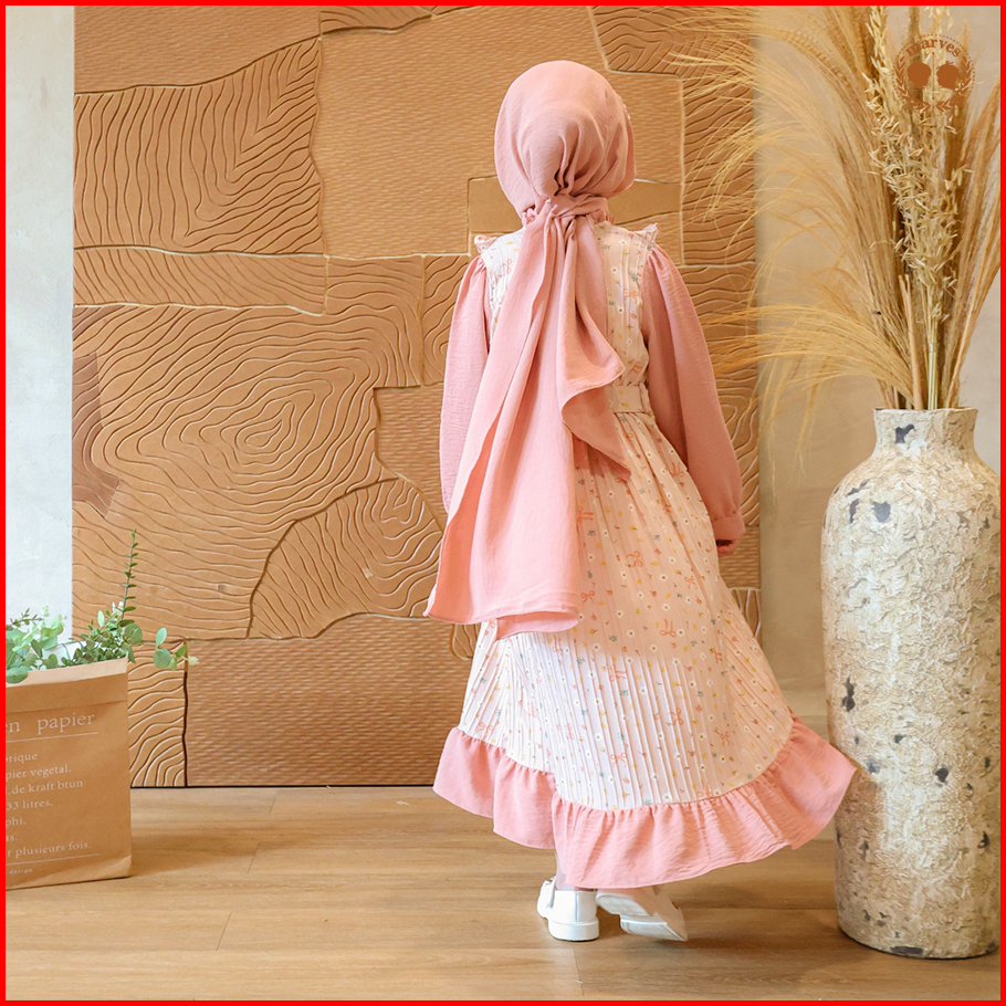 Marves Ayesha Gamis Baju Muslim Anak Perempuan Bahan Crinkle Motif Bunga Usia 2 Hingga 14 Tahun