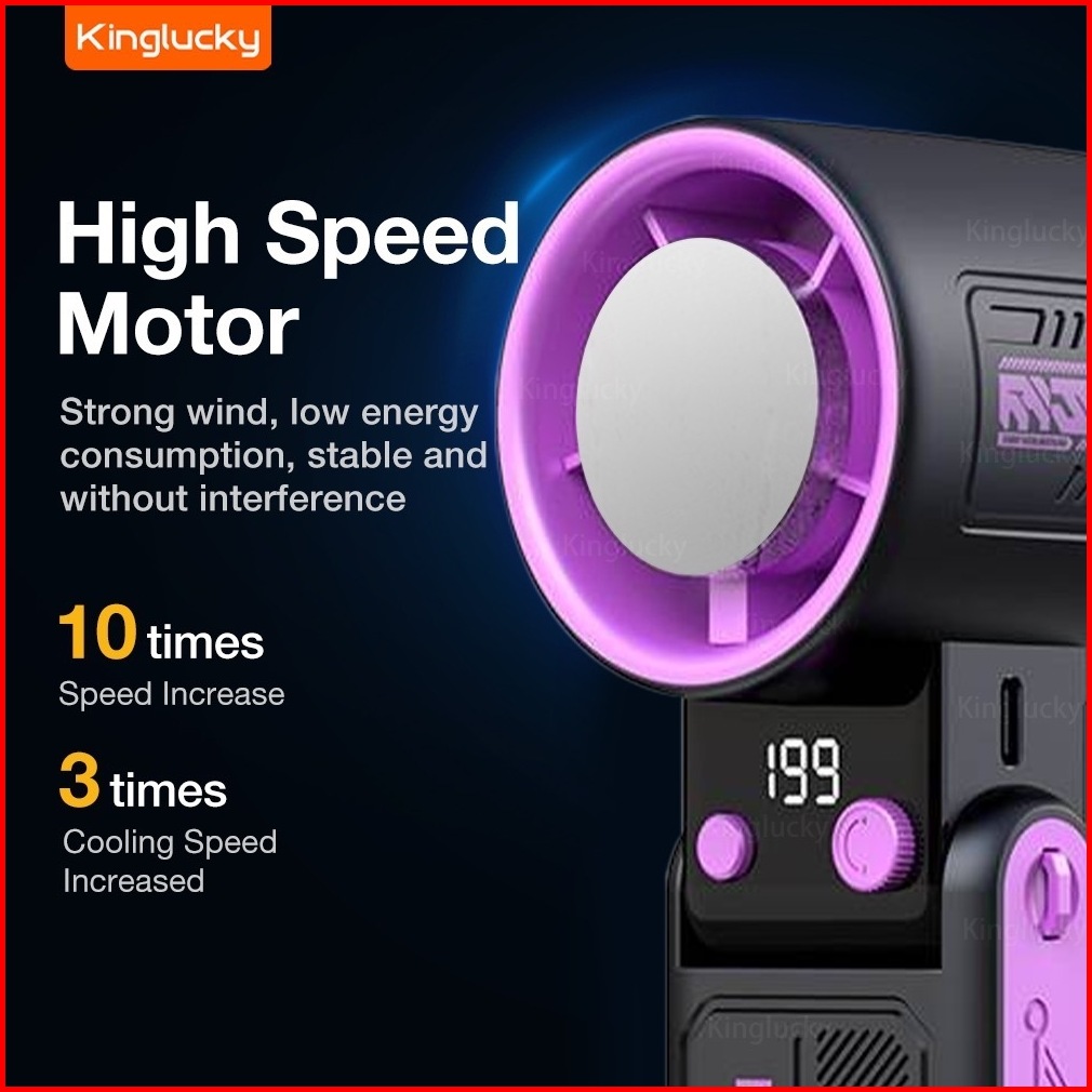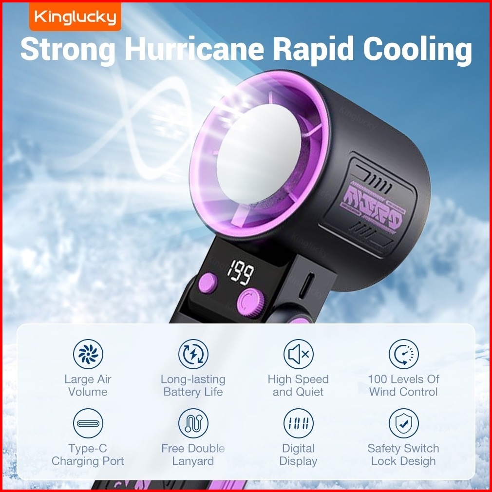 Kinglucky Kipas Kecepatan Tinggi Portabel Semikonduktor Turbo Genggam Foldable Fan Pendingin Mini Tampilan 199 Digital L