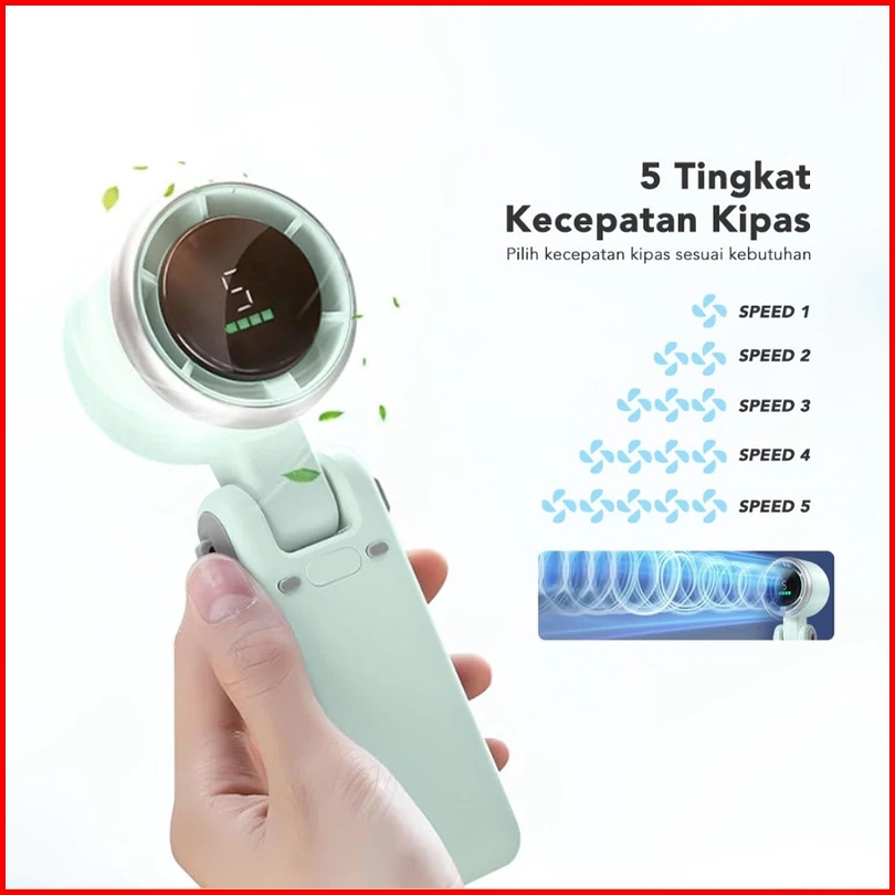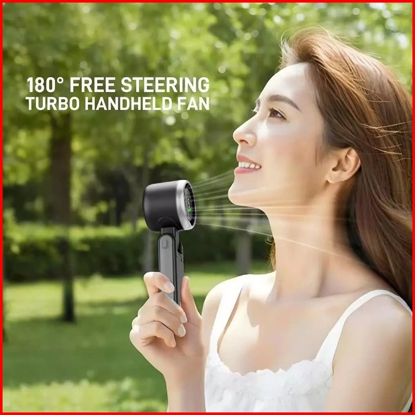 Kipas Angin Portable Mini Desain Bilah Turbin Angin Super Kuat 199 Tingkat Kecepatan Angin Tampilan Led Baterai Berkapas