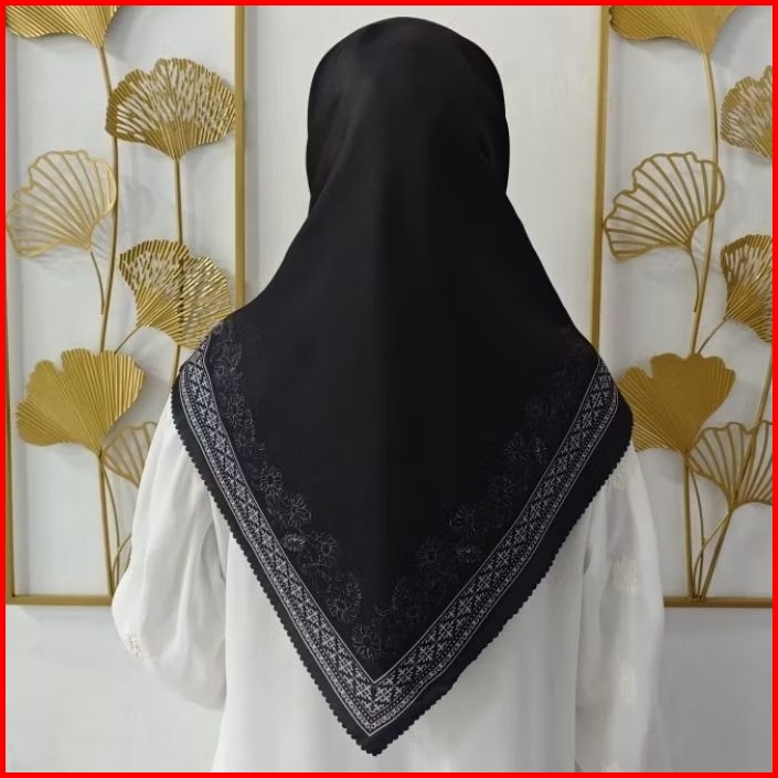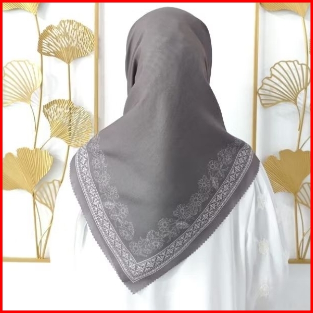 Hijab Persegi Kerudung Segi Empat Motif Coklat Mahoni Standar Voal Premium