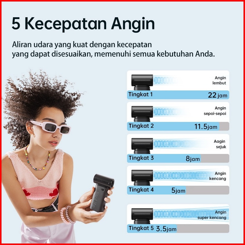 Jisulife Kipas Angin Mini Portable Pengumpul Angin Turbo 5000mah Dengan Daya 5 Tingkat Pengaturan Angin Kencang Yang Dap