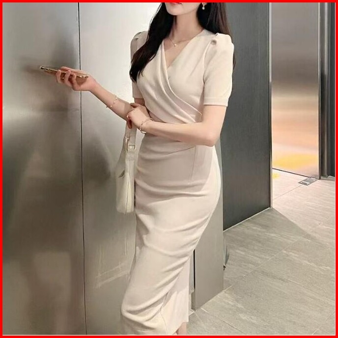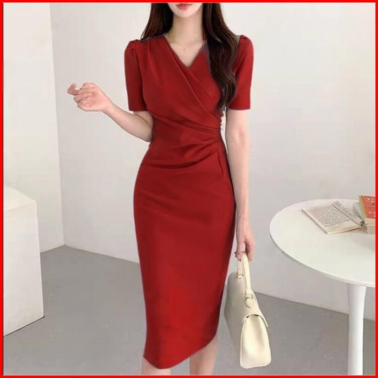 Hertha Duga Red Dress Elegant Christmas Party Midi Dress Merah Korean Style Cny Terbaru 2025 Dress Santai Wanita Kekinia