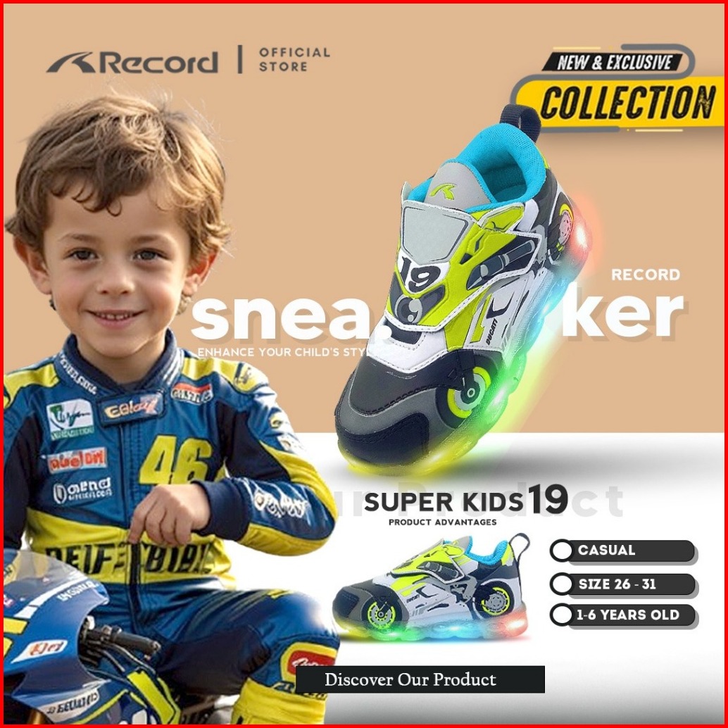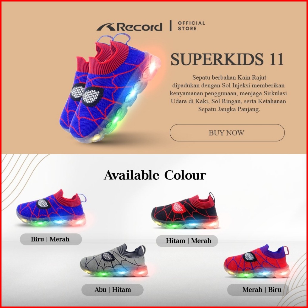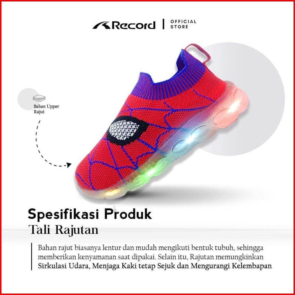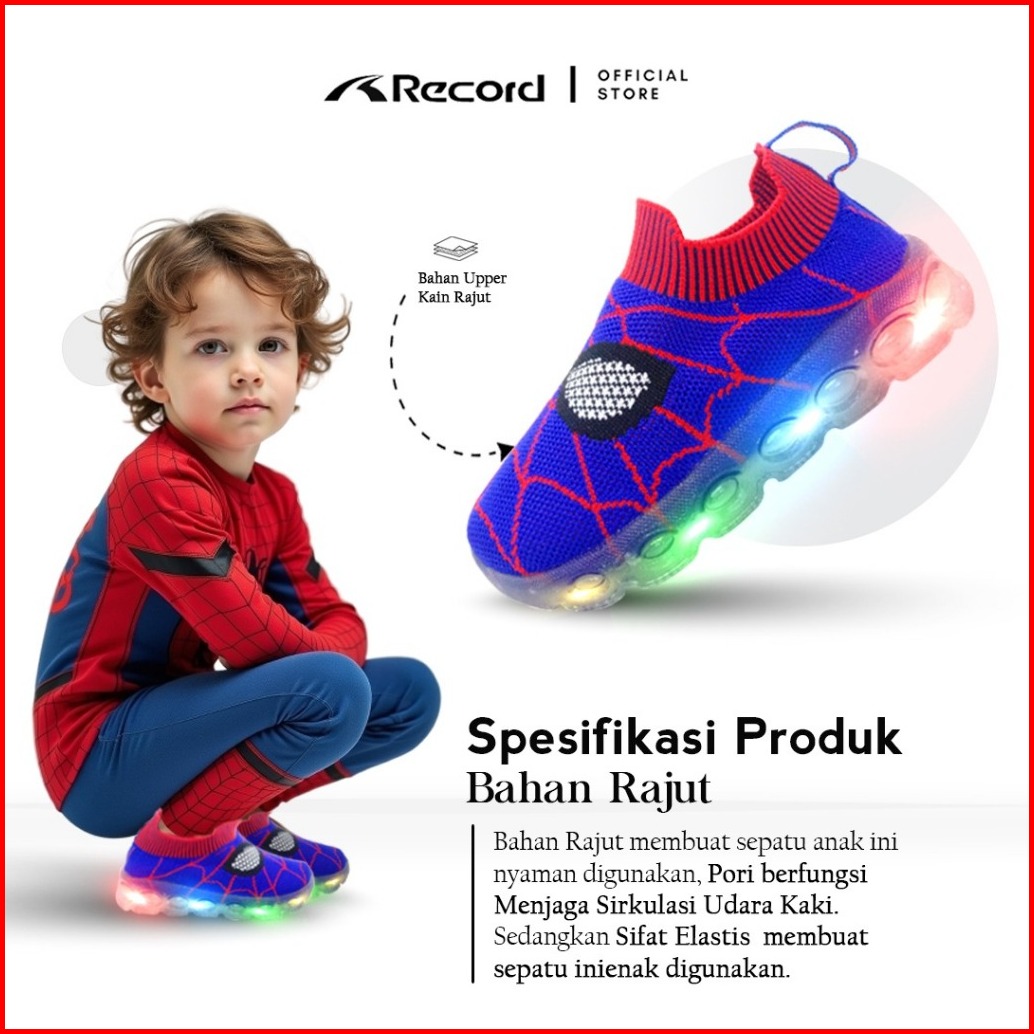 Super Kids 11a Fashion Sepatu Lampu Led Anak Paud Laki 1-6 Thn Velkro Karakter Spiderman Size 26-31