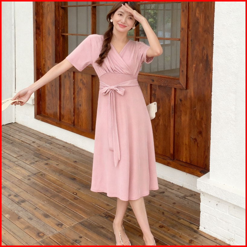 Miss Emita Baju Midi Dress Kondangan Simple Elegan Pink Dress Pantai Wanita Kekinian Terbaru 2025 Party Dress Formal Pre
