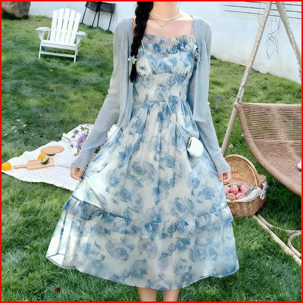 Miss Emita Baju Midi Dress Cantik Ke Pantai Wanita Kekinian Korean Style Long Dress Tanpa Lengan Motif Bunga Terbaru 202