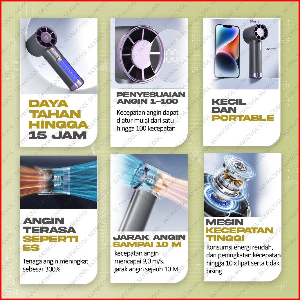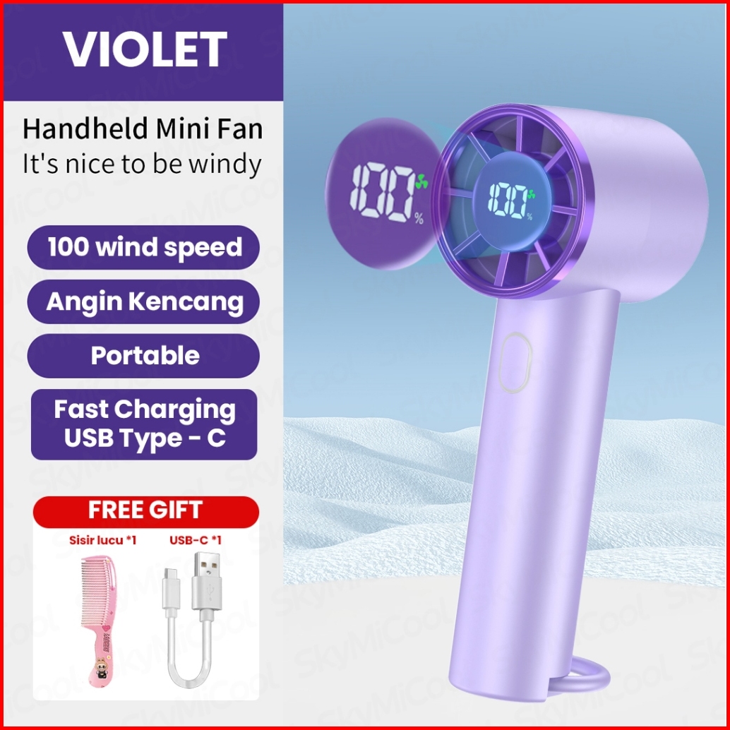 Skymicool Kipas Angin Portable Turbo High Speed Lcd Digital Mini Fan Tangan Genggam Usb 100gear Mf06