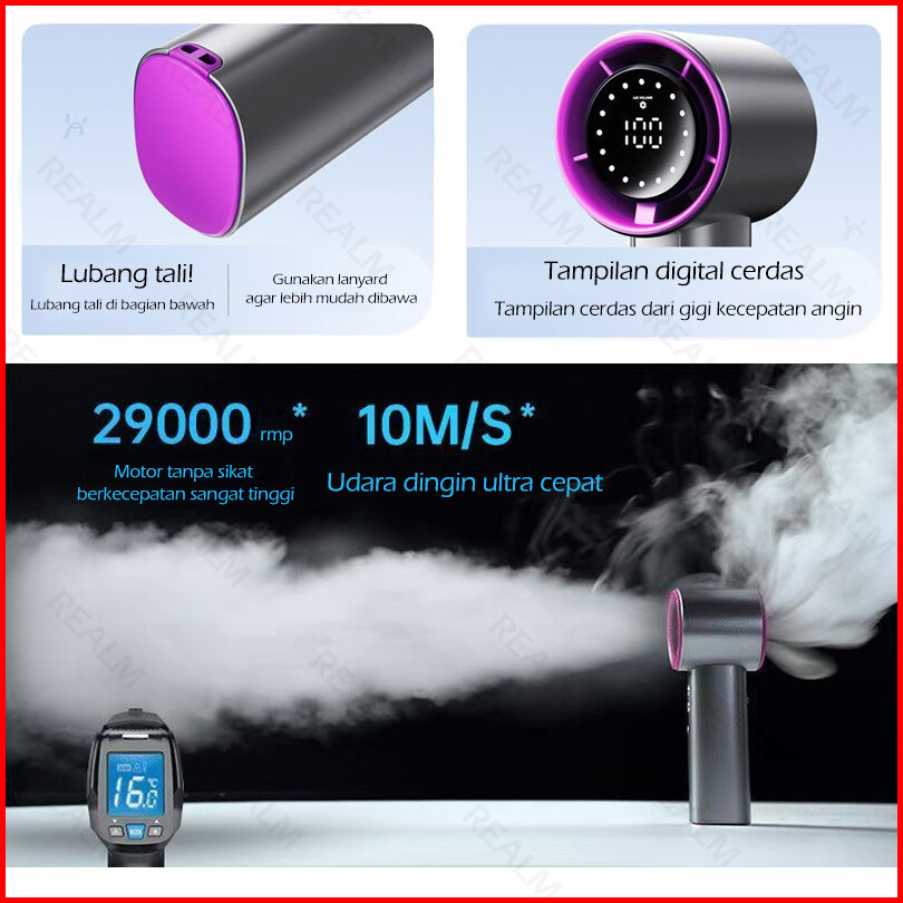 Realm Kipas Angin Mini Portable 13000rpm Turbo - Baterai 4000mah Tahan Lama 100 Level Angin Desain Ringan Untuk Aktivita