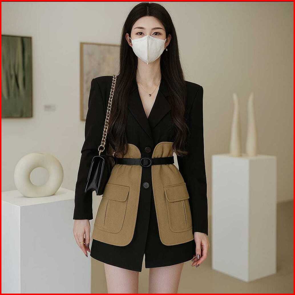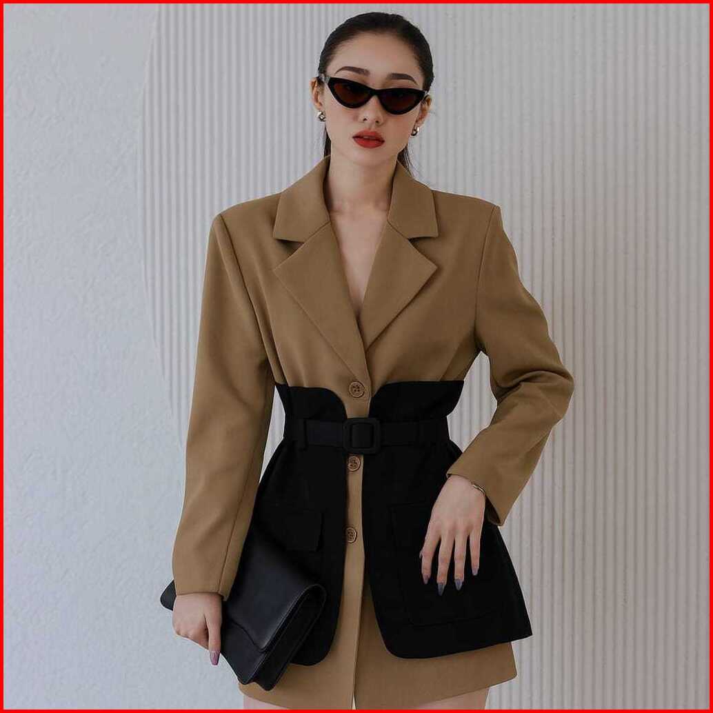 Naluna Studio Ailee Blazer Two Tone Pocket Wanita Outer Lengan Panjang