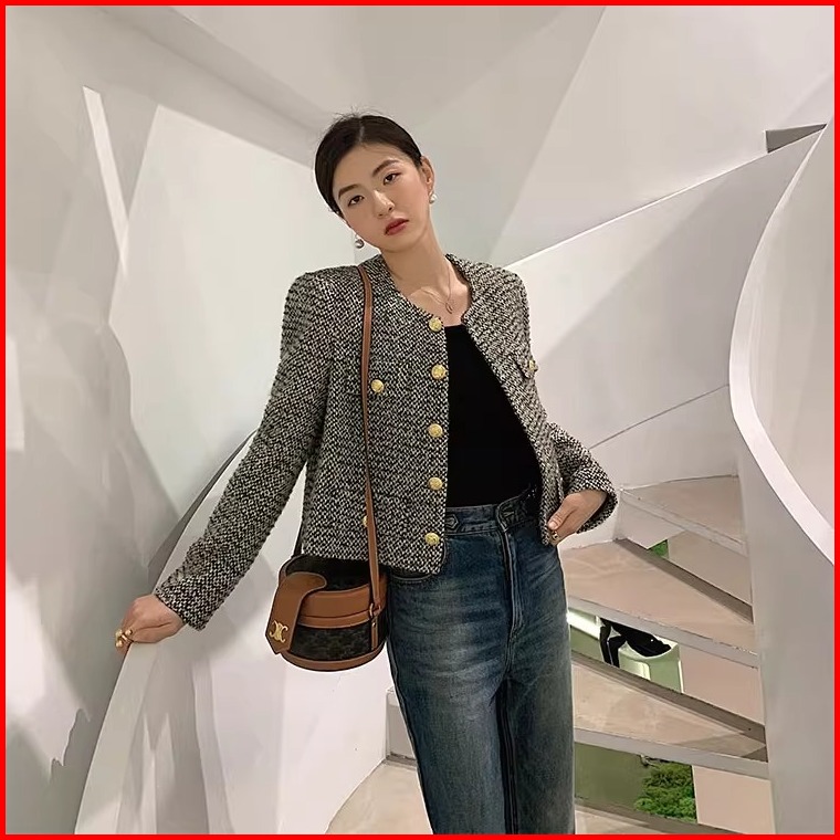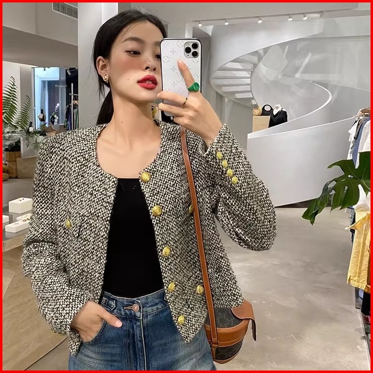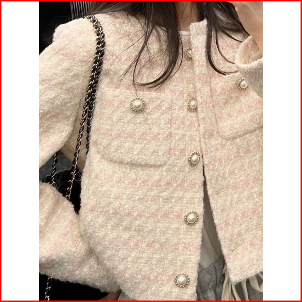 Emita Bloom Tweed Blazer Wanita Kekinian Korean Style Jumbo Terbaru 2025 Baju Atasan Spring Outer Crop Top Lengan Panjan