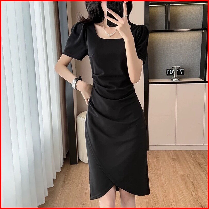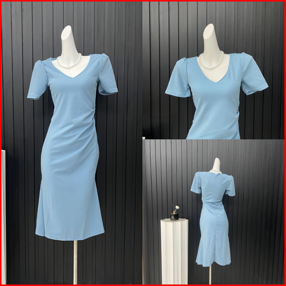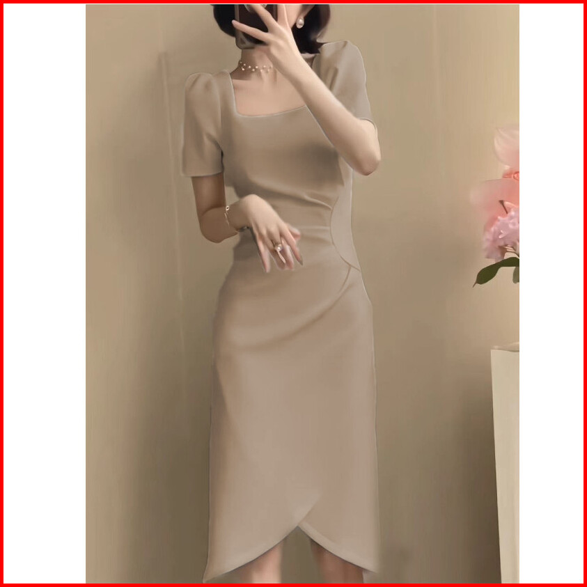 Hertha Duga Dress Putih Korean Style Kondangan Simple Elegan Wanita Kekinian Midi Dress Press Body Terbaru 2025