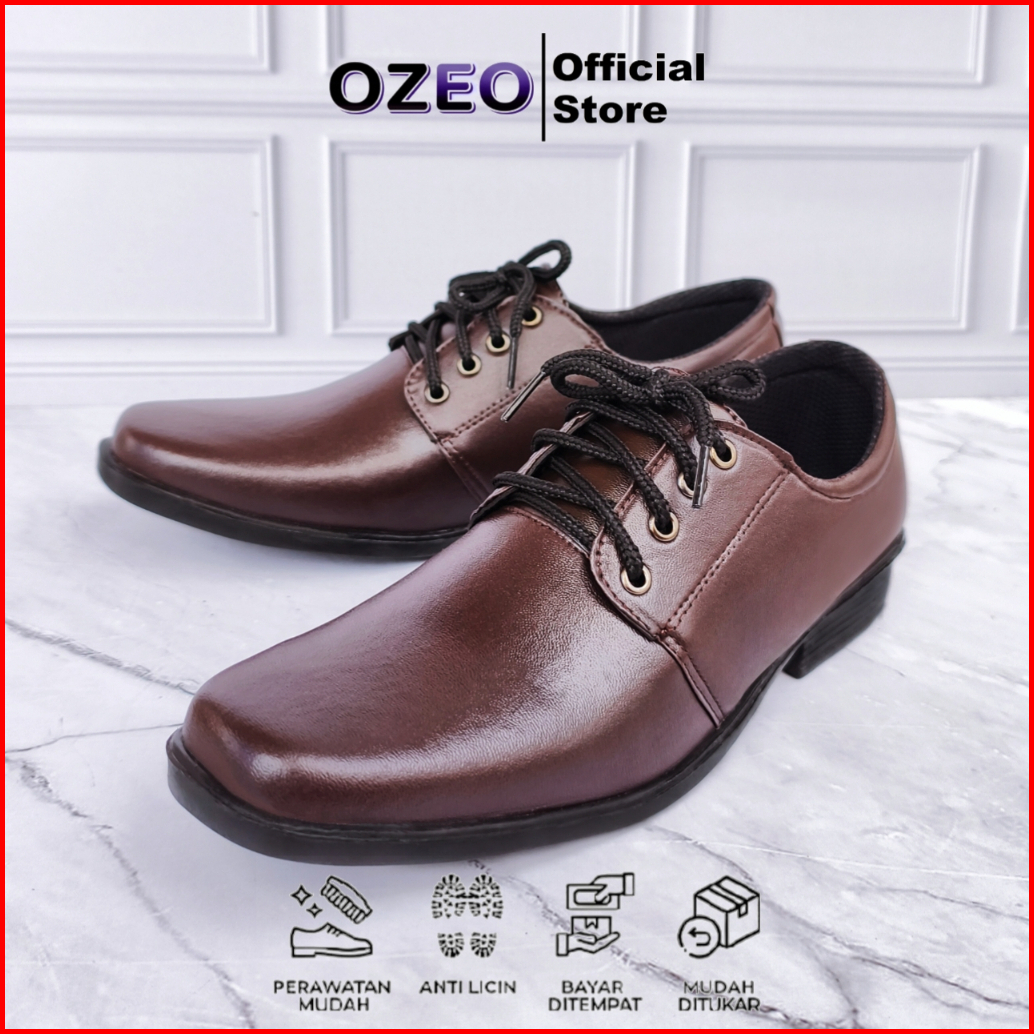 Ozeo - Sepatu Pantofel Tali Pria Dewasa Pantofel Cowok Sepatu Paskib Kulit Formal Kasual Sepatu Kerja