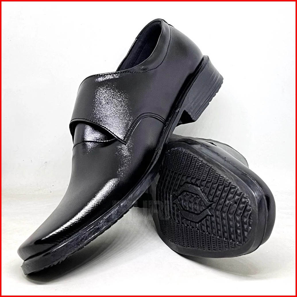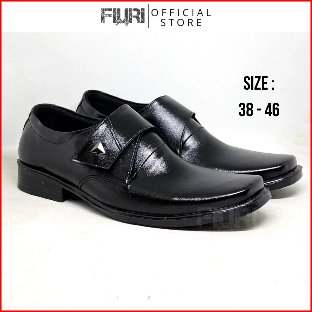 Fiuri - Erik 38-46 - Sepatu Pantofel Perekat Polos Pelatihan Kuliah Kerja Kantor Formal Pria - Hitam
