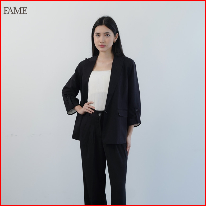 Fame 9110240 Everyday Blazer Black Blazer Wanita Lengan 7 8