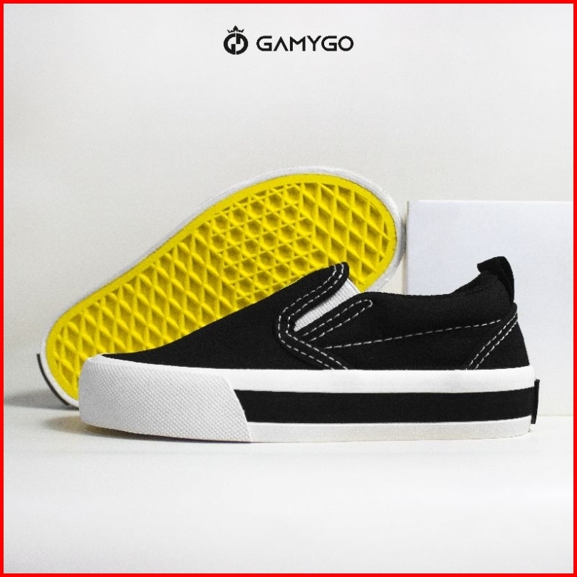 Gamygo - Sepatu Anak Laki Laki Perempuan Hitam Putih Slip On Black Logos Kids Series