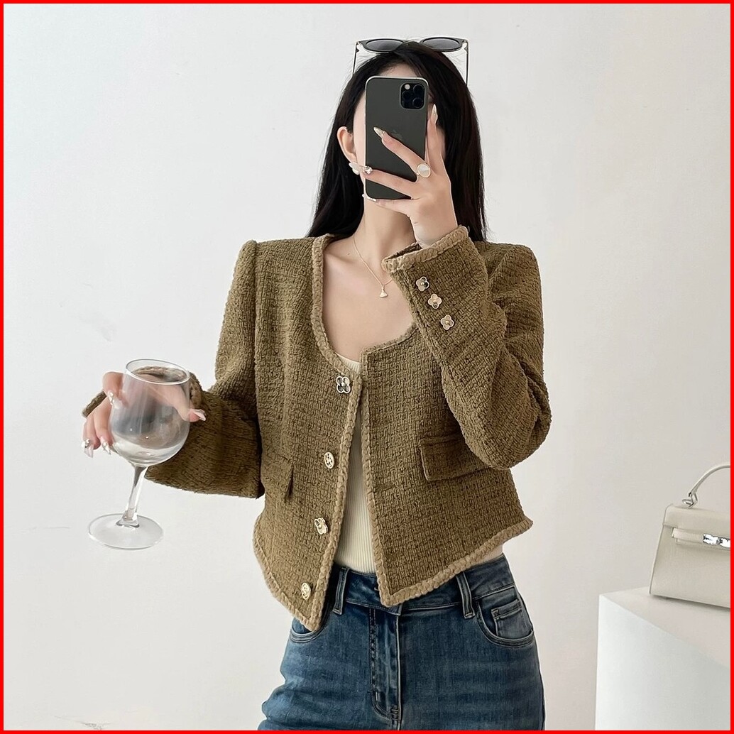Blazer Tweed Fashion Korea Model Crop Bahan Tebal M668