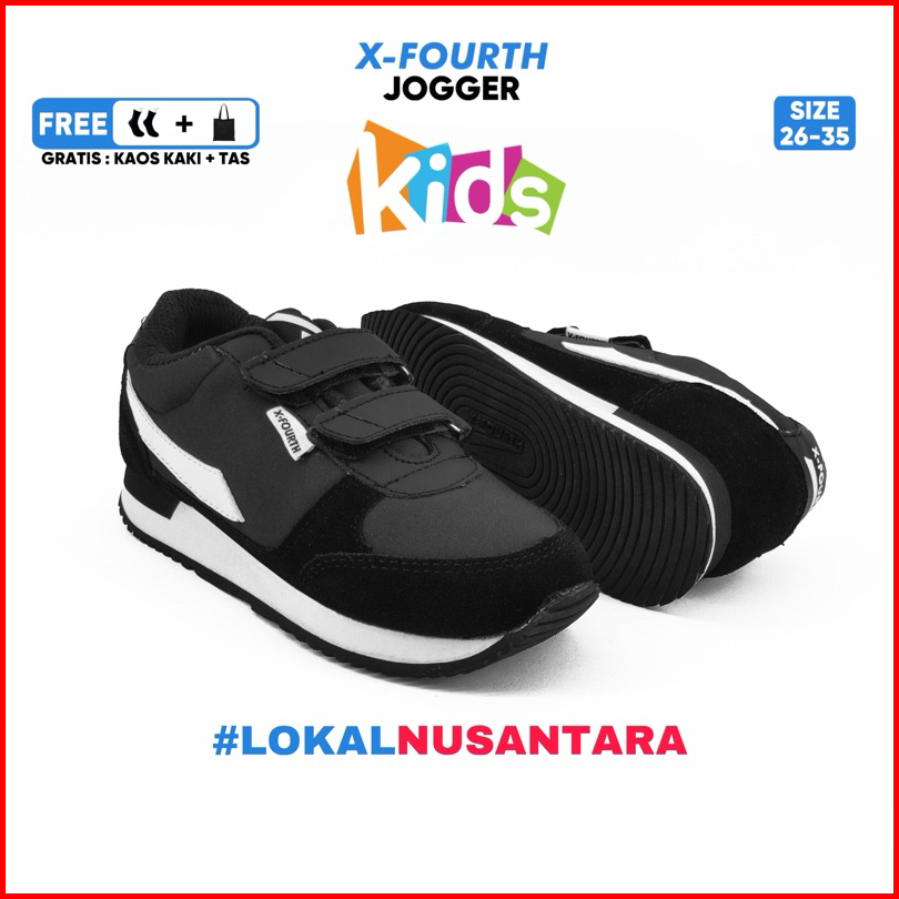 X-fourth Jogger Kids Hitam Putih - Sepatu Anak Laki-laki Perempuan Sepatu Sekolah Trendy Keren Sepatu Lari Olahraga Anak