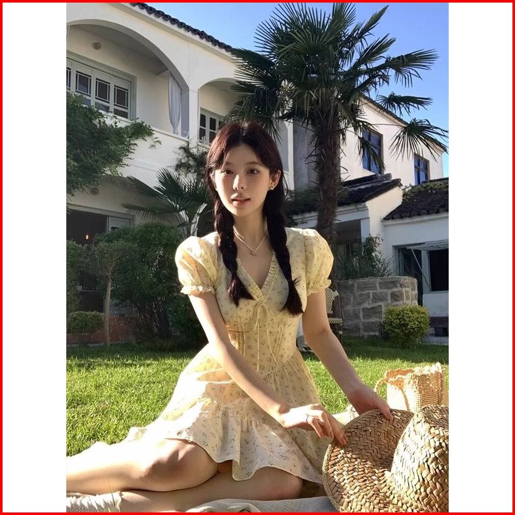 Cohan Dr8125 Korean Style Floral Mini Dress Vneck