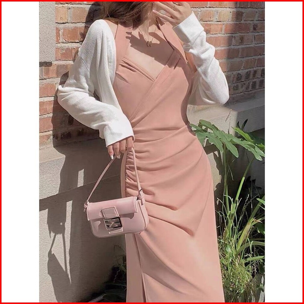Emita Bloom Long Dress Pink Soft Panjang Elegan Korean Style Dress Tali Kecil Bali Dress Beach Summer Cantik Ke Pantai T