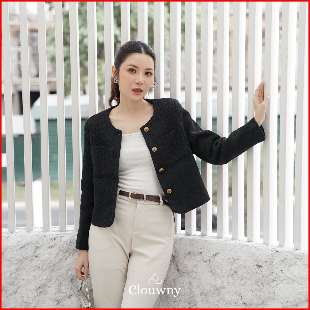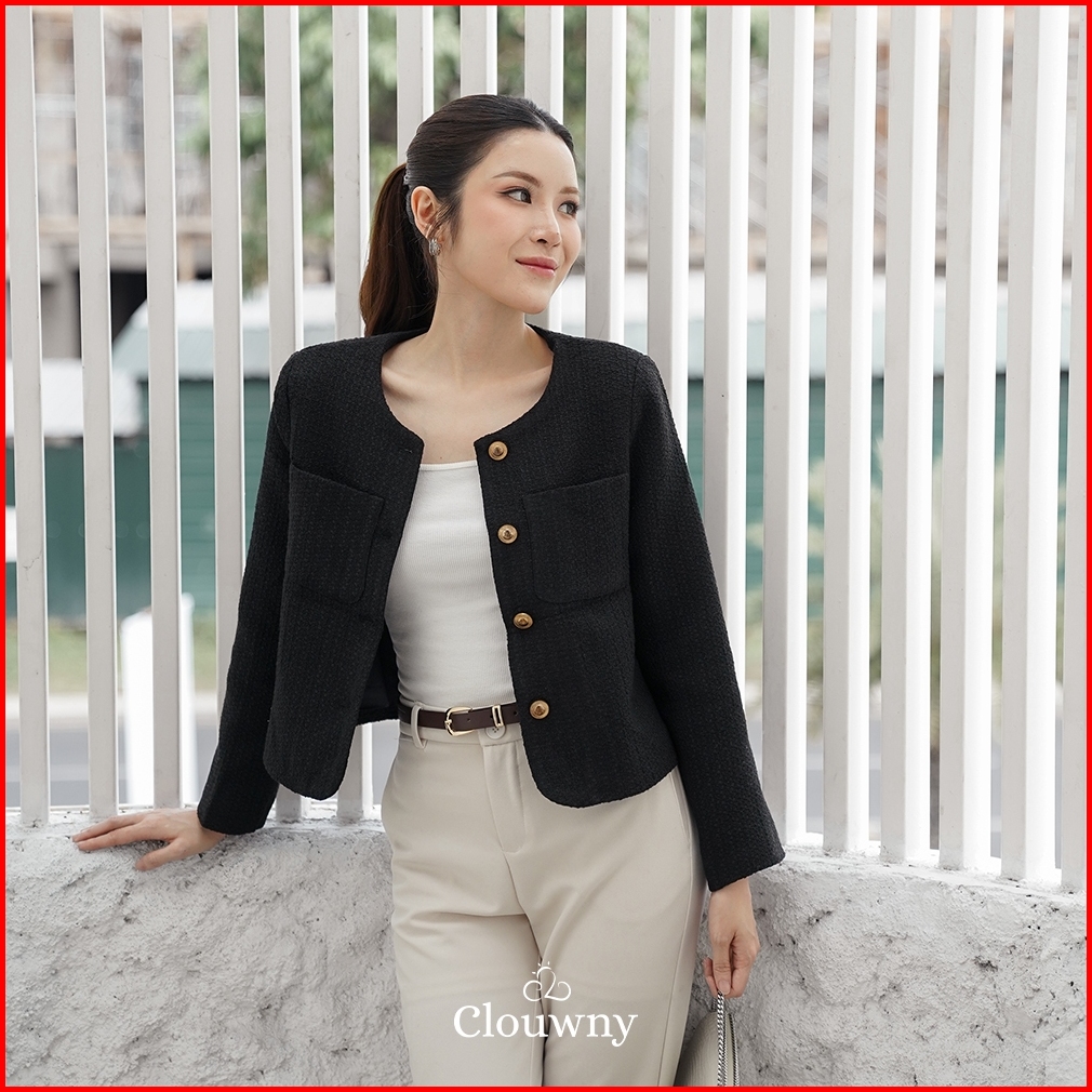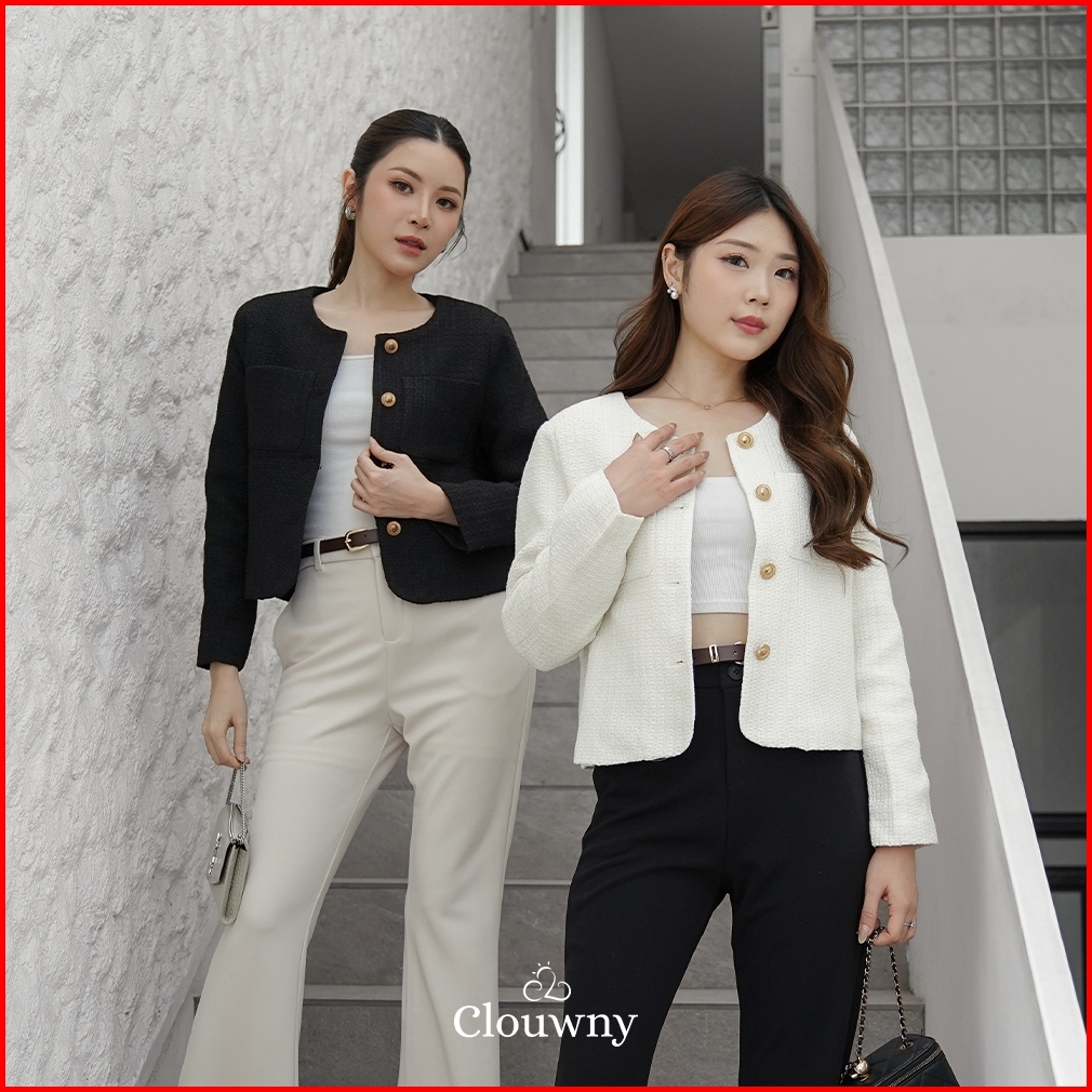 Clouwny Davia Tweed Blazer Wanita Formal Blazer Kantor Wanita Lengan Panjang Casual Fit To Xxl
