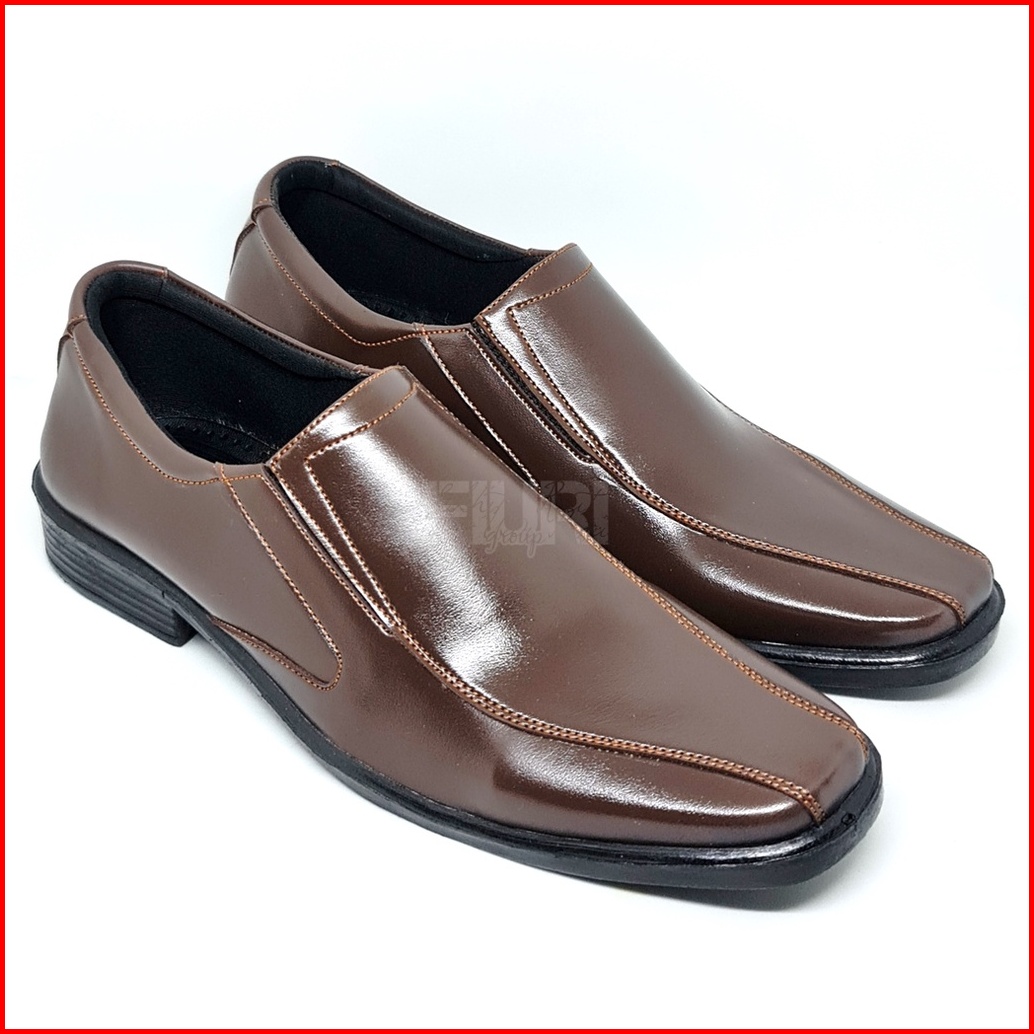 Fiuri - Satya 36-46 - Sepatu Pantofel Polos Pelatihan Kuliah Kerja Kantor Formal Pria - Coklat