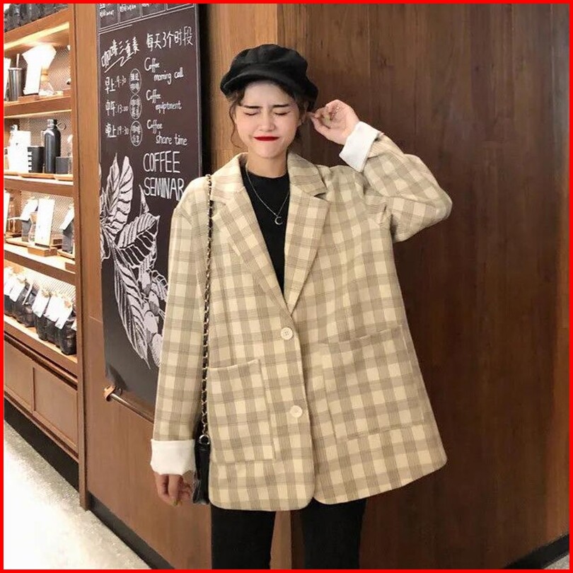 Air Wt024 Plaid Blazer Korean Style Kemeja Lengan Panjang Kotak-kotak Hijau Longgar Baru Untuk Wanita Cardigan Wanita Bl