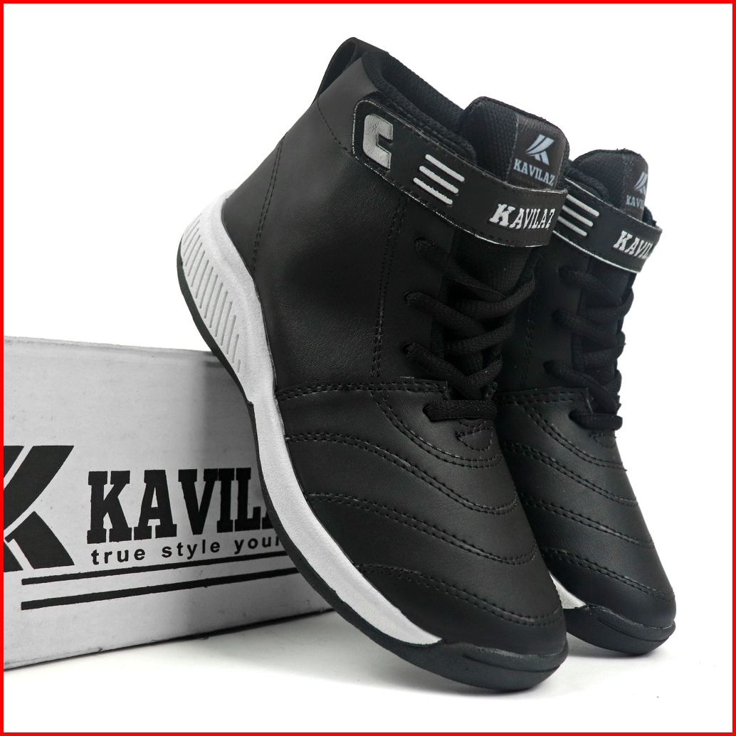 Kavilaz True Style Yourself Sepatu Sneakers Hitam Sekolah Anak Laki Laki Boot Tali Perekat Kode B2
