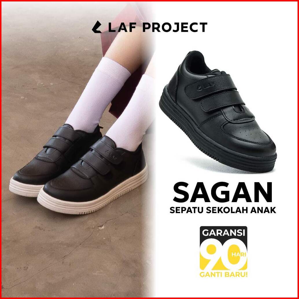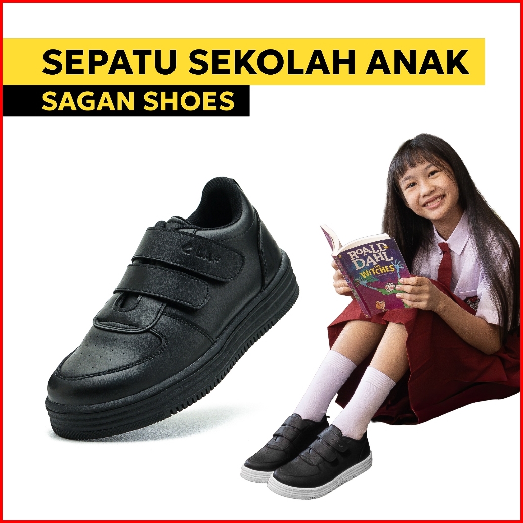 Sepatu Sekolah Sneakers Anak Laki Laki Perempuan Hitam Putih Polos Casual Premium Sagan Laf Project