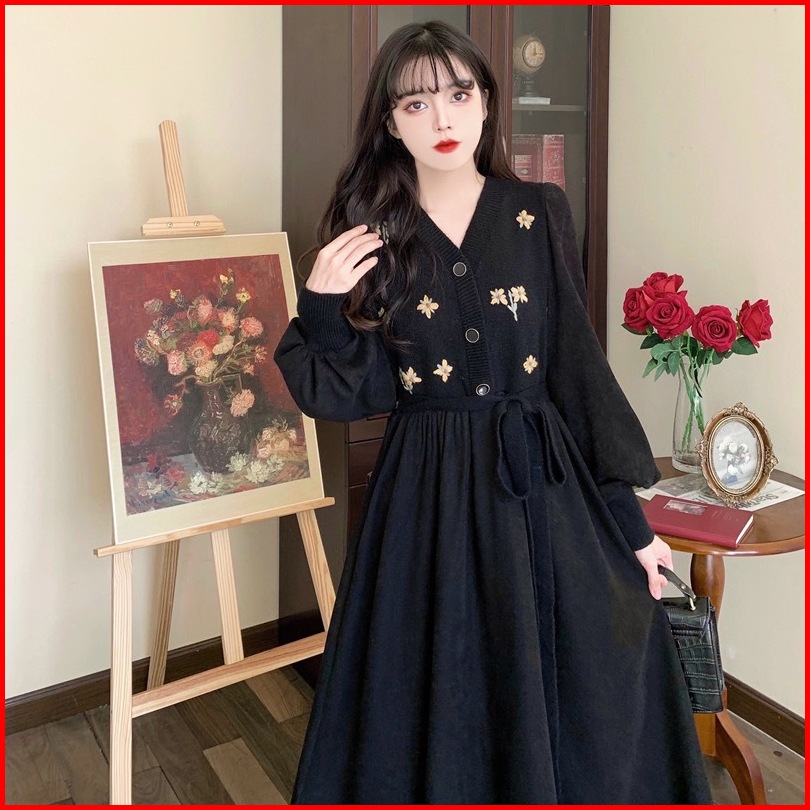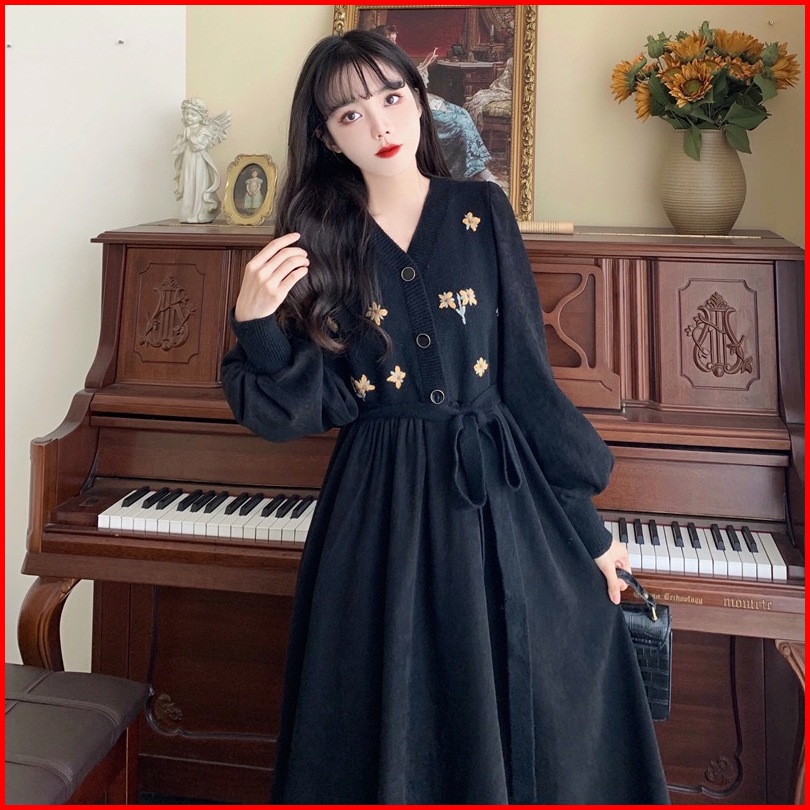 Susana Id Vintage Corduroy Dress With Floral Embroidery B012d