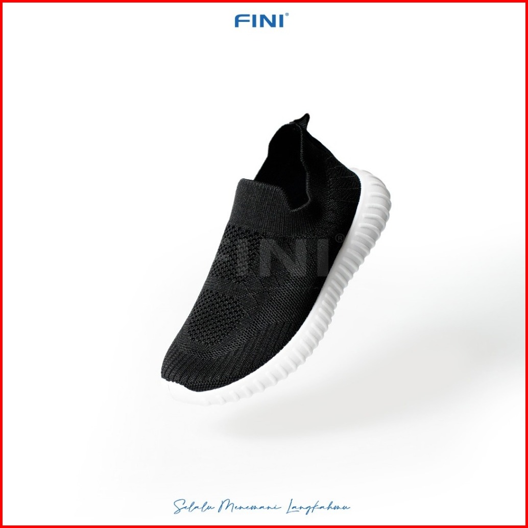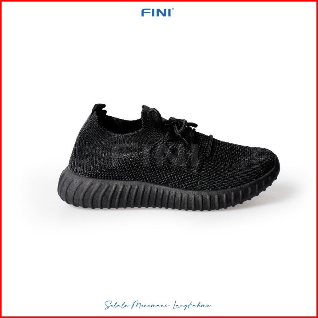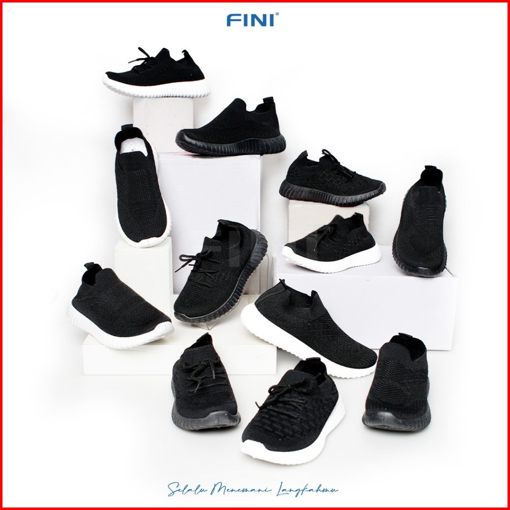 Fini Sepatu Sekolah Hitam Anak Laki Laki Perempuan Rajut Sd-smp Slip On Warna Hitam Hitam Lis Putih Size 34-39 Usia 9-13