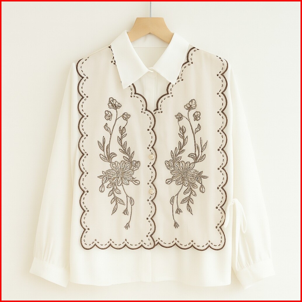 Naluna Studio Lexia Blouse Linen Embroidery Atasan Lengan Panjang Muslim Wanita
