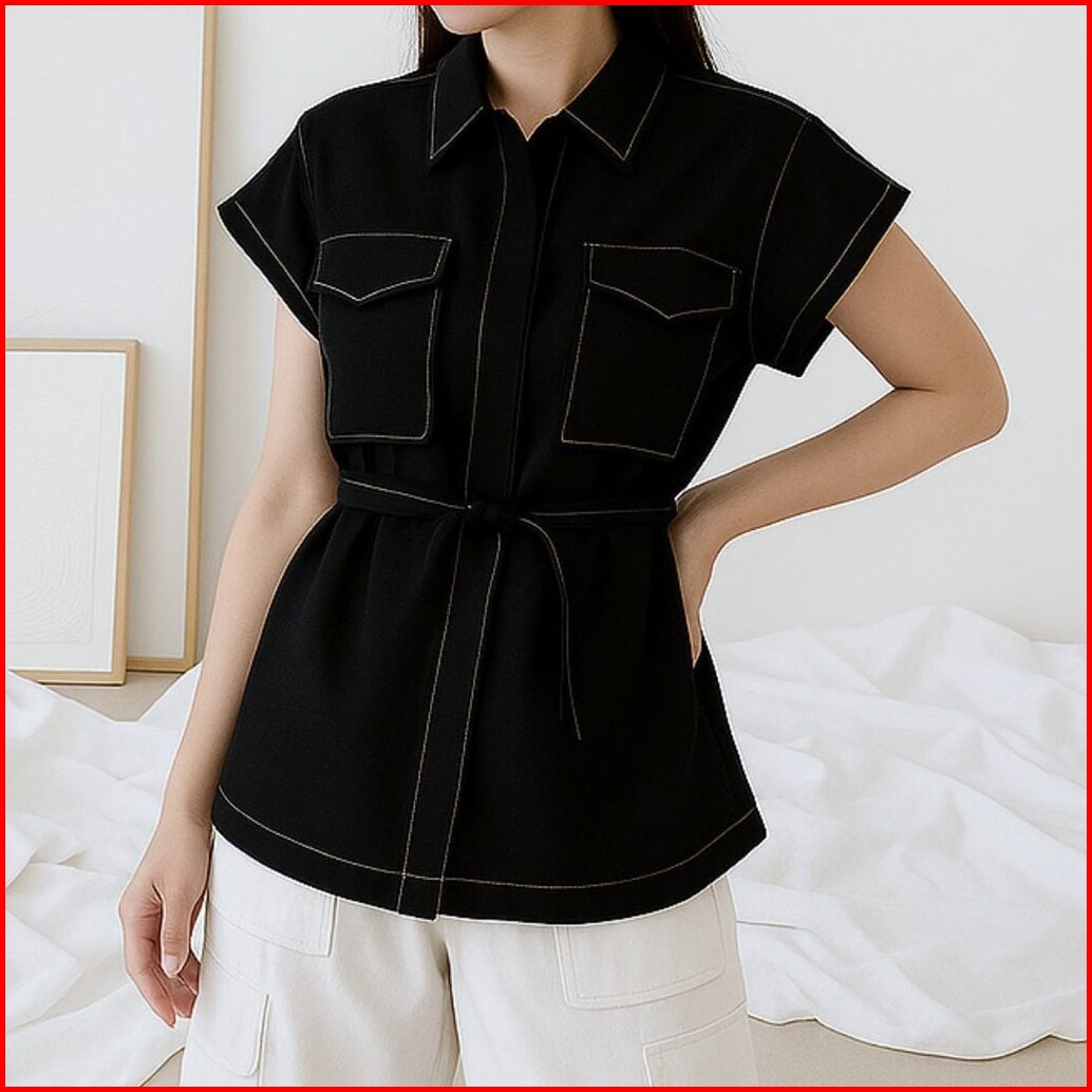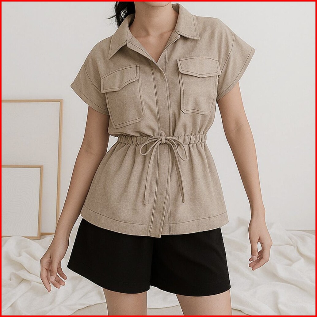 Vallina Outfit - Umina Blouse Korean Look Matt Linen Rami All Size Fit To L Besar Casual Daily